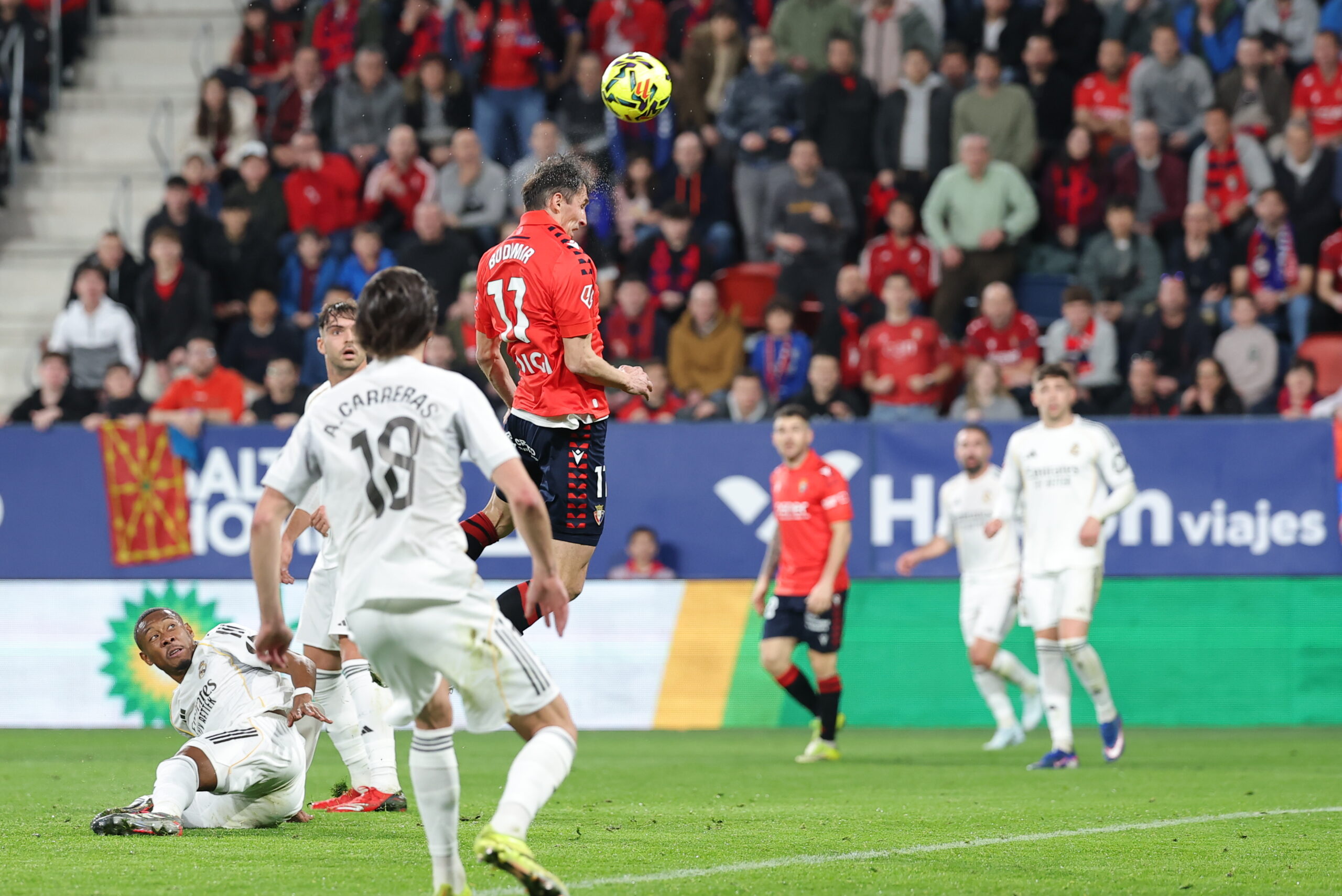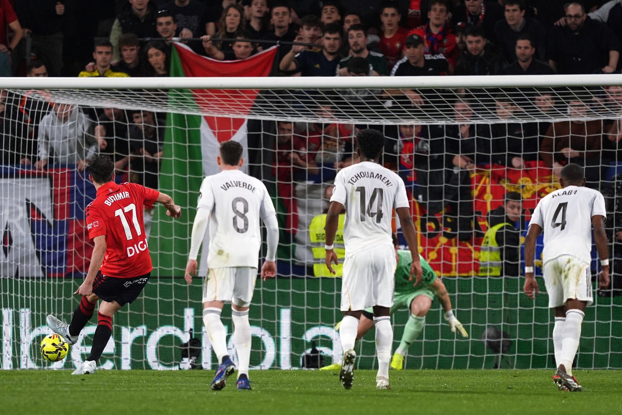 ผลปรากฎว่า โอซาซูน่าเล่นดีเกินคาด แม้การครองบอลจะตกเป็นของราชัน แต่ด้วยเกมรับที่คุมมาดริดได้อย่างอยู่หมัด และจังหวะสวนกลับที่ทำได้ดี ทำเอาแฟนบอลทีมเยือนเสียวไม่น้อย และเป็นจริง นาที 38 โอซาซูน่าออกนำสำเร็จ จากการมาได้จุดโทษ ตอนแรกผู้ตัดสินไม่เป่าให้ แถมยังแจกใบเหลืองแก่บูดิเมียร์ โดยแจ้งว่าพุ่งล้ม แต่ VAR แย้ง และมองว่าคูร์กตัวส์ไปเหยียบบูดิเมียร์จนล้มลง ก่อนที่หัวหอกวัย 34 ปี สังหารเข้าไปไม่เหลือ สตาร์ท 1-0 สำเร็จ เข้าช่วงทดครึ่งแรก มาดริดบุกหนักก่อนหมดครึ่งแรก แต่ไม่เป็นผล