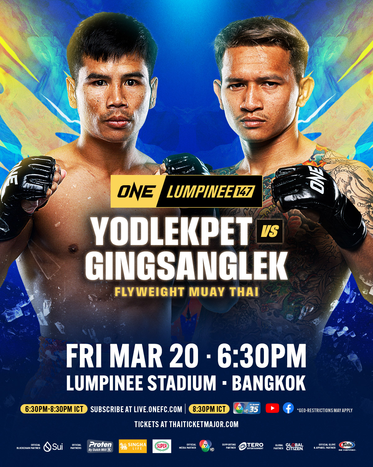 ศึก ONE ลุมพินี 147 เริ่มการแข่งขันคู่แรกเวลา 18.30 น. จองบัตรเข้าชมในสนามได้ทาง THAI TICKET MAJOR