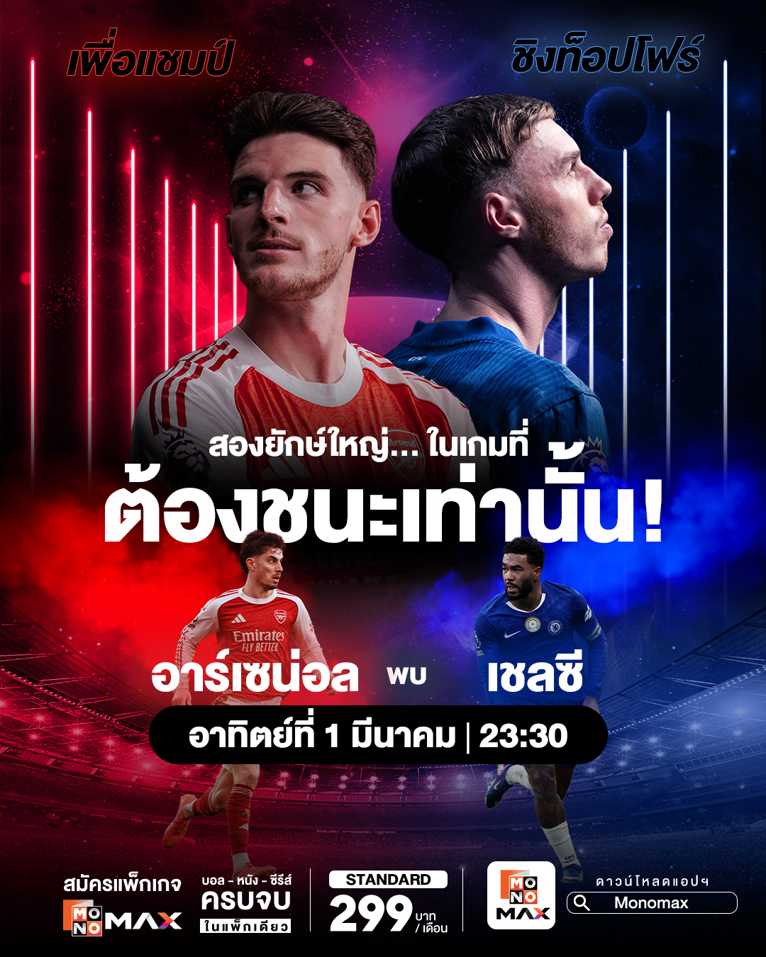 ก่อนจะปิดฉากในเวลา 23.30 น. ไฮไลต์ที่แฟนบอลจับตากับบิ๊กแมตช์ประจำสัปดาห์ “ปืนใหญ่” อาร์เซนอล ปะทะ “สิงห์บลูส์” เชลซี ศึกแห่งศักดิ์ศรีกรุงลอนดอนที่มากกว่าสามแต้ม เพราะนอกจากศักดิ์ศรี ยังอาจชี้ชะตาทิศทางท็อปโฟร์โดยตรง เกมรุกความเร็วสูงของทั้งสองทีมเตรียมสร้างจังหวะเร้าใจตลอด 90 นาที รับชมทาง Monomax