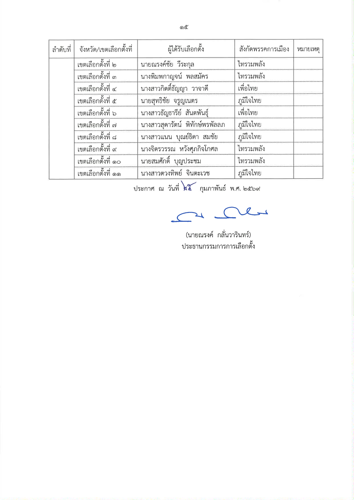 ในการนี้ขอประชาสัมพันธ์ให้ผู้สมัครรับเลือกตั้ง สส.แบบแบ่งเขตเลือกตั้ง ที่ได้รับการเลือกตั้งเป็น สส.ดังกล่าว รับหนังสือรับรองการได้รับเลือกตั้งในวันที่ 26 ก.พ.-27 ก.พ. เวลา 09.00-16.30 น. และวันที่ 2-6 มี.ค. 2569 ระหว่าง 08.30-16.30 น. ไม่เว้นวันหยุดราชการ ที่ห้องประชุม 201 ชั้น 2 สำนักงาน กกต. ในกรณีผู้สมัครไม่สามารถมารับหนังสือรับรองได้ด้วยตัวเอง ให้ทำหนังสือมอบอำนาจ พร้อมรับรองสำเนาบัตรประชาชนของผู้มอบอำนาจและผู้รับมอบอำนาจมาในวันดังกล่าวด้วย