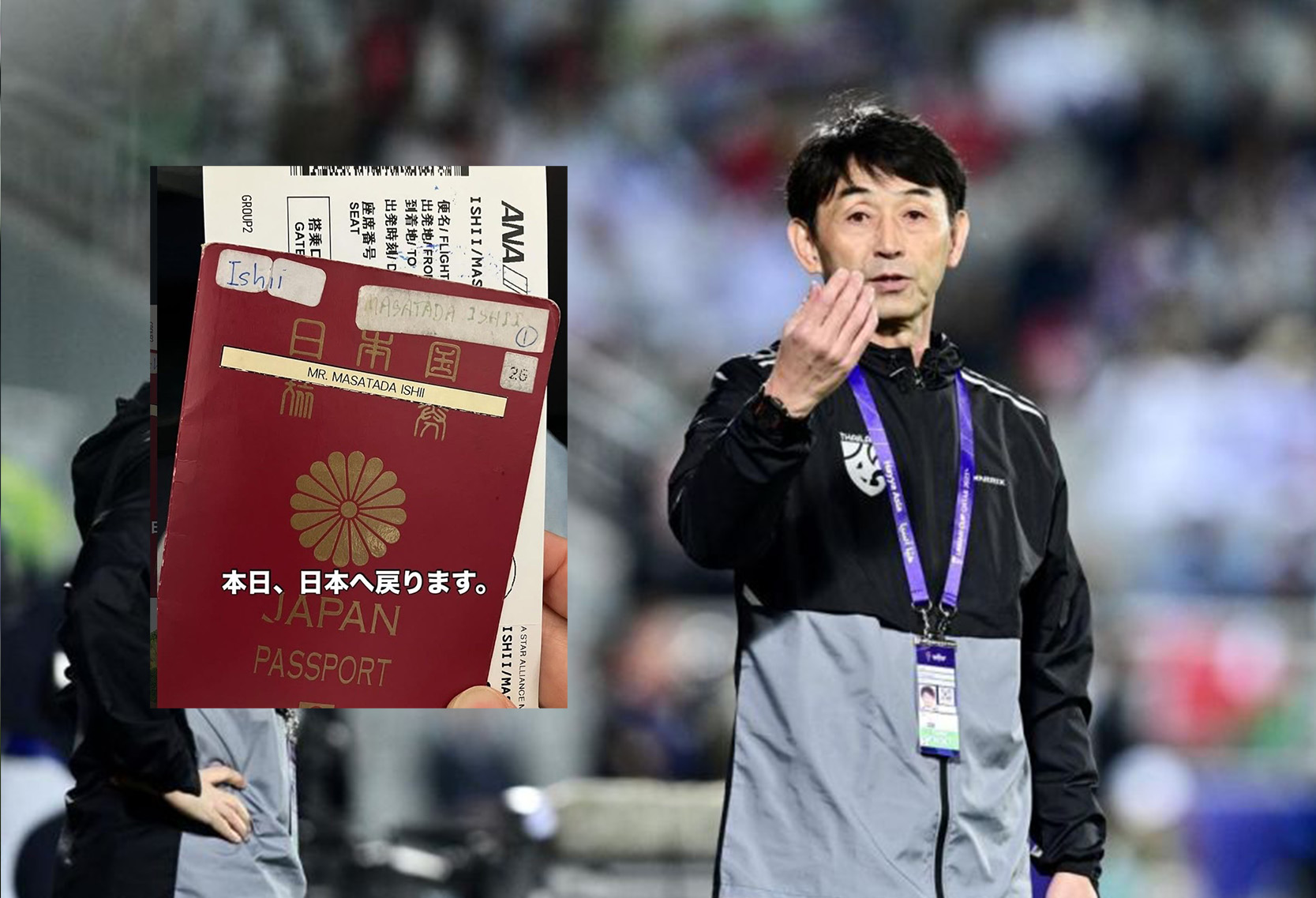 มาซาทาดะ อิชิอิ อดีตกุนซือทีมชาติไทย โพสต์ภาพพาสปอร์ตผ่านอินสตาแกรมส่วนตัว พร้อมข้อความสั้น ๆ ว่า “วันนี้ ผมเดินทางกลับญี่ปุ่นแล้ว” เมื่อวันพุธที่ 25 กุมภาพันธ์ นับเป็นการอำลาประเทศไทยอย่างเป็นทางการ หลังทำงานในวงการลูกหนังไทยยาวนานกว่า 6 ปี