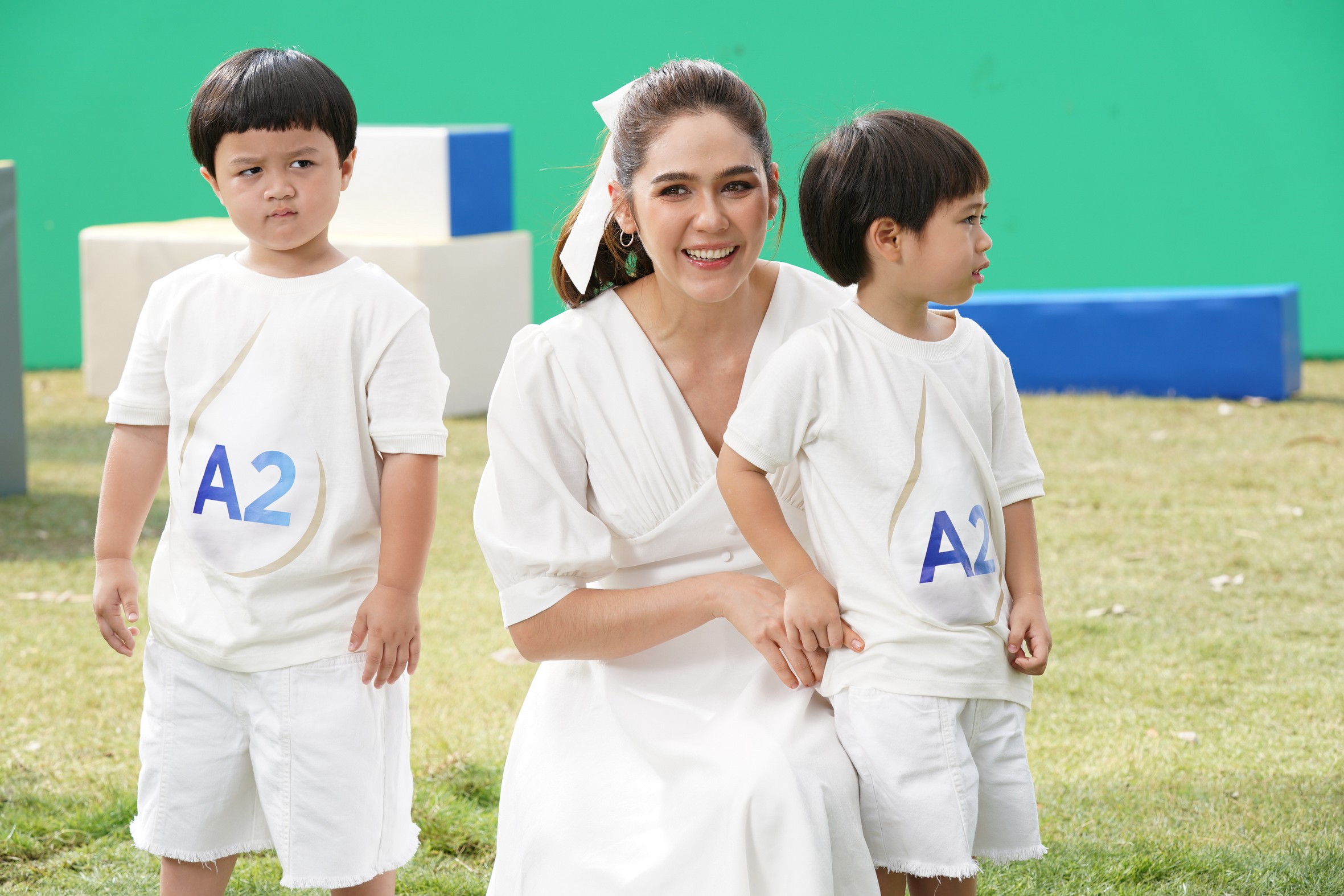 “แต่เมื่อเขาสบายท้อง ก็จะอารมณ์ดีพร้อมที่จะเรียนรู้สิ่งต่าง ๆ รอบตัวตลอดเวลา นี่แหละจุดเริ่มต้นที่ชมให้ความสำคัญ พอถึงเวลาเข้าฉาก ชมปล่อยให้เขาได้เล่นเต็มที่ เป็นธรรมชาติที่สุดในแบบของเขา ทำให้ชมรู้สึกว่า พี่ ๆ เติบโตขึ้นมาก อย่างวันนี้ชมรู้เลยว่า พัฒนาการของเขาก้าวล้ำไปอีกขั้น พี่สายพี่ยุเข้าใจในบรีฟงาน เข้ากับเพื่อน ๆ พี่ ๆ ในกองถ่ายได้ดี และพร้อมที่จะเรียนรู้สิ่งใหม่ ๆ ตลอดเวลา ทั้งการใส่ชุดมาสคอตหยดนม A2 ที่พี่ ๆ ไม่เคยใส่มาก่อน และกล้าที่จะเข้าใกล้และจับวัวซึ่งเขาไม่เคยสัมผัสมาก่อน ยิ่งได้เห็นลูกเติบโตเป็นเด็กที่มีหัวคิดและหัวใจที่ดีแบบนี้ คนเป็นแม่อย่างชมก็ภูมิใจ และตอกย้ำว่าการที่ชมพยายามเลือกสรรแต่สิ่งดี ๆ ให้ลูกมันส่งผลถึงพัฒนาที่ก้าวล้ำอย่างต่อเนื่องของลูกในวันนี้จริง ๆ”