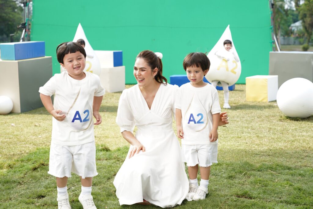 แม่ชมเปรยถึงเบื้องหลังของพัฒนาการของเด็ก ๆ กว่าที่สองแฝดจะทำการแสดงได้เป๊ะปังขนาดนี้ ชนิด เทคเดียวผ่านว่า “ชมคิดว่าลูกเราจะมีพัฒนาการที่ดี พร้อมเรียนรู้ไปกับสิ่งใหม่ ๆ รอบตัวได้ดี ต้องมาจากพื้นฐานสุขภาพร่างกายที่แข็งแรงและจิตใจที่พร้อมอยู่เสมอ นอกจากให้ความรักและเวลาอย่างเต็มที่แล้วโภชนาการของลูกเป็นสิ่งสำคัญ ถึงตอนนี้พี่แฝดจะทานอาหารทั้ง 3 มื้อแล้ว แต่ชมก็ยังเสริมเขาด้วยนมอย่างต่อเนื่อง โดยเลือกนมสูตรที่มีโปรตีน A2 เพราะจะย่อยง่าย ช่วยให้ลูกสบายท้อง ร่วมด้วยสารอาหารอื่น ๆ ที่มีประโยชน์ต่อการเติบโตและพัฒนาการของลูก