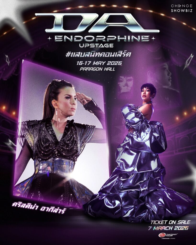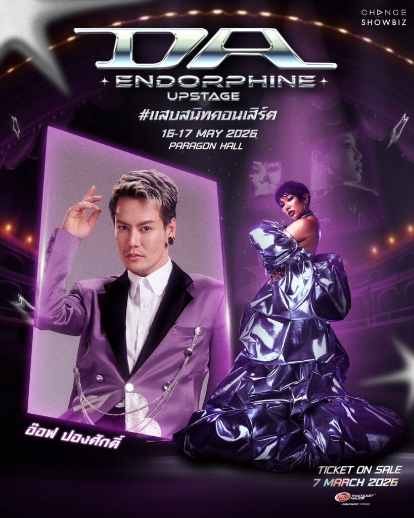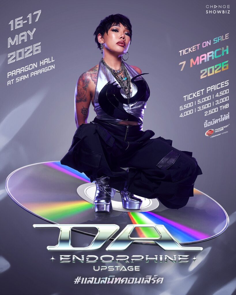 ถ้าคุณเคยเติบโตมากับเสียงของ “ดา เอ็นโดรฟิน” มาปลุกปรากฏการณ์ความคิดถึงด้วยกัน อย่าปล่อยให้คำว่า “บัตรหมดแล้ว” กลายเป็นความเสียดายซ้ำสอง ใครที่ไม่อยากพลาดโมเมนต์ประวัติศาสตร์ เตรียมตั้งนาฬิกาปลุกเตือนไว้ให้ดี เปิดขายบัตรในวันที่ 7 มีนาคมนี้ เวลา 10.00 น. ที่ WWW.THAITICKETMAJOR.COM และทุกสาขา ระหว่างนี้ก็รีบนัดรวมตัวเพื่อนกันให้ครบแล้วมาเจอกันวันคอนเสิร์ต “DA ENDORPHINE UPSTAGE #แสบสนิทคอนเสิร์ต ” วันแสดง 16-17 พฤษภาคมนี้ ที่ PARAGON HALL (รอบวันเสาร์ 18.00 น. / รอบวันอาทิตย์ 17.00 น.) มาร้องเพลง “ดา เอ็นโดรฟิน” ให้สนุกสุดไปด้วยกัน