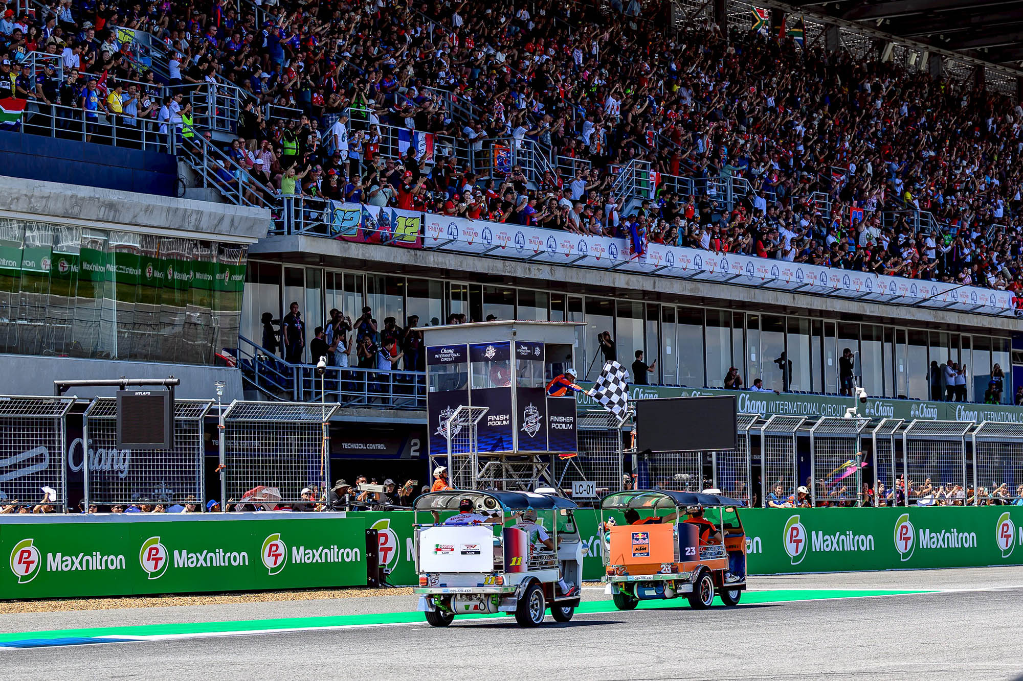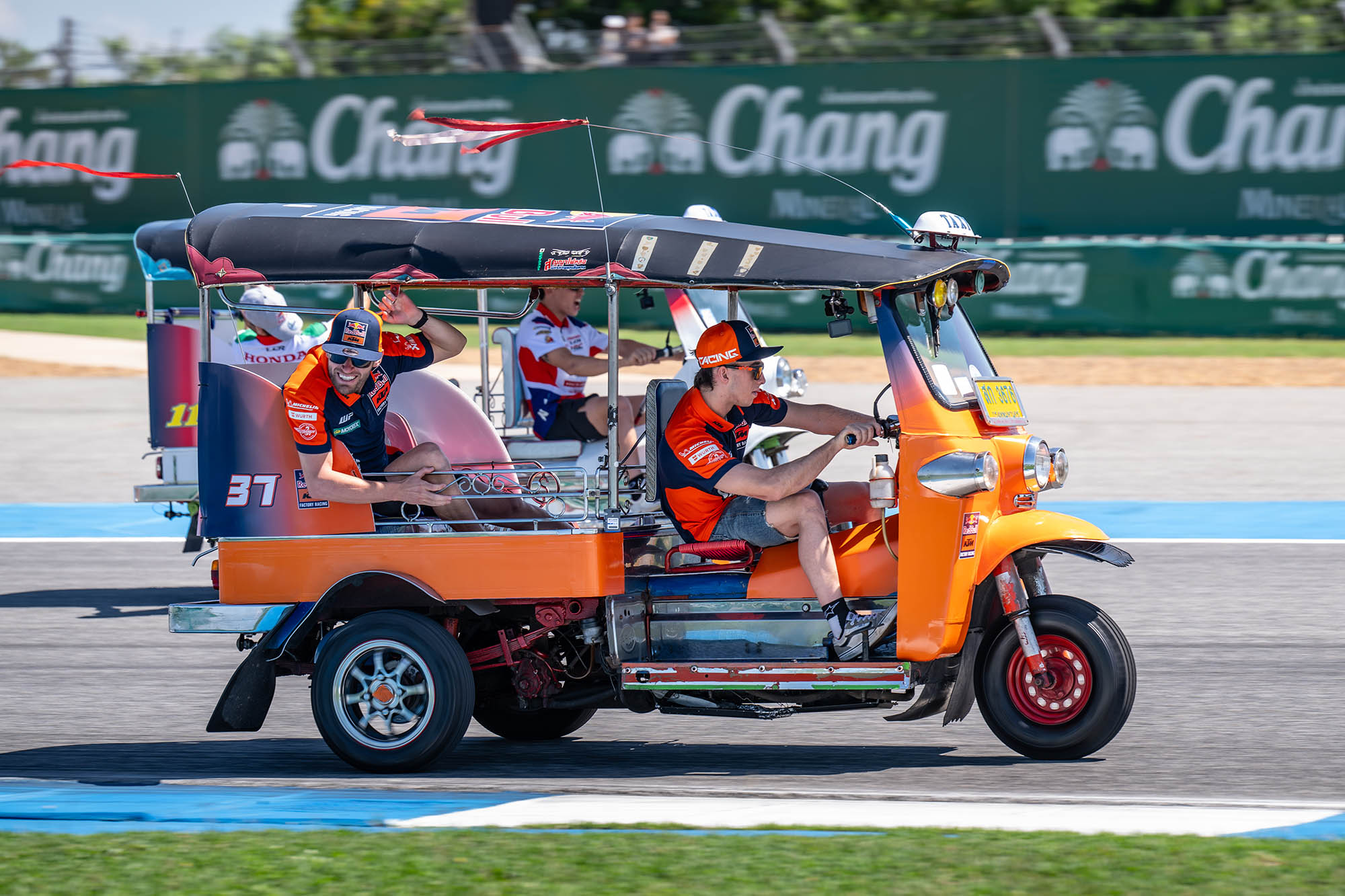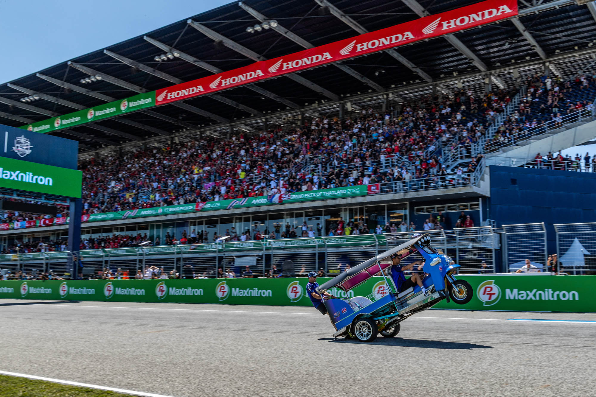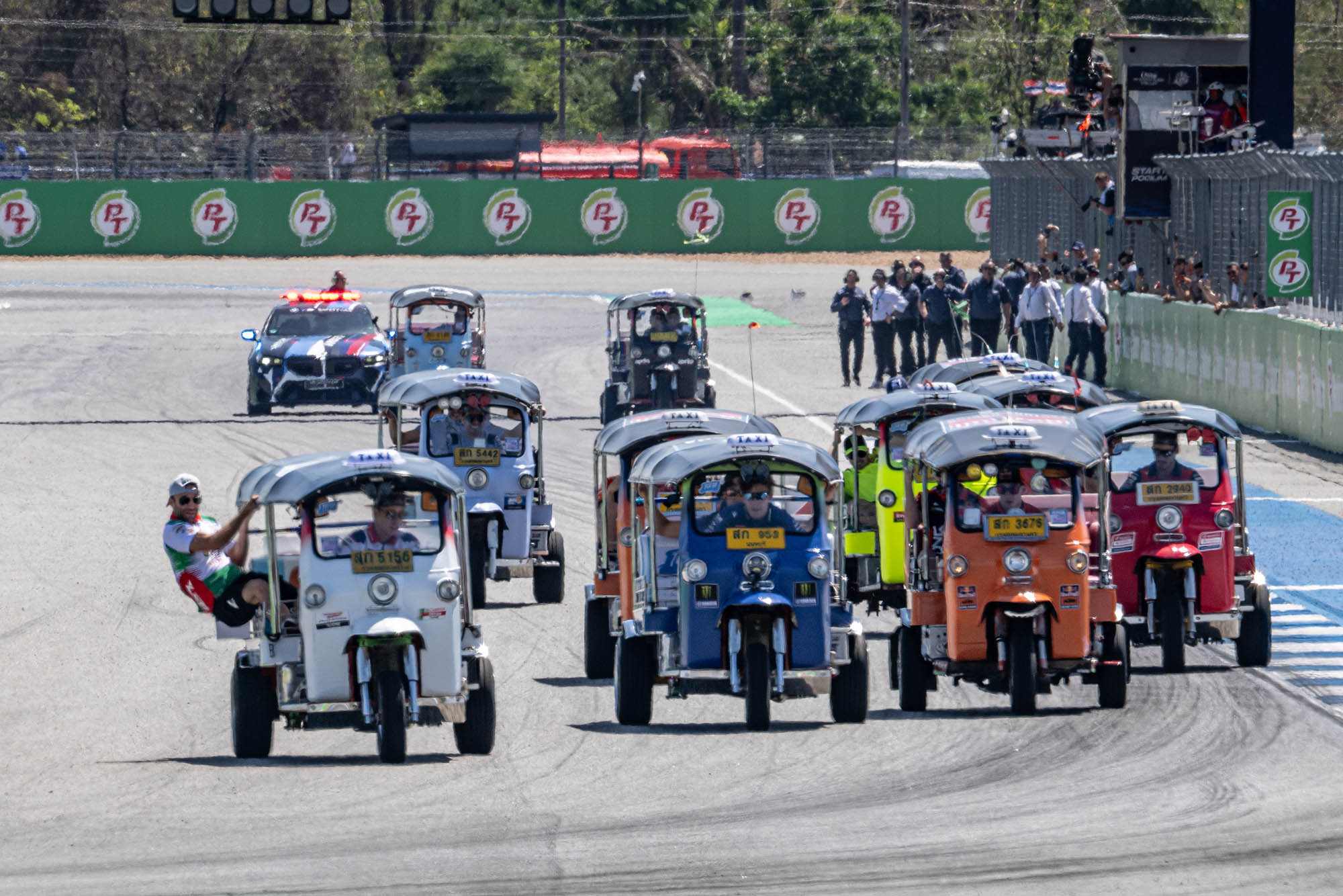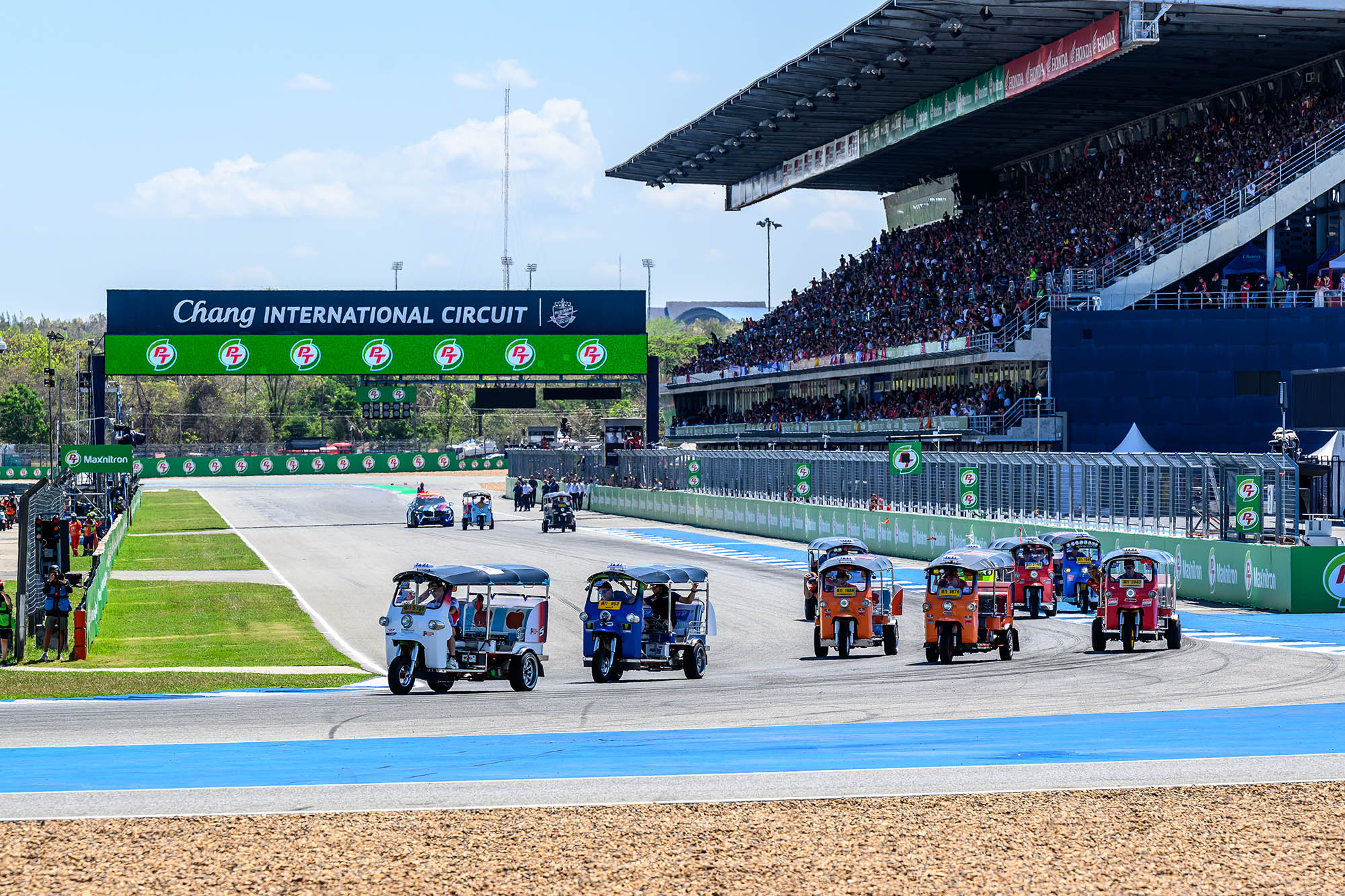 การแข่งขัน พีที กรังด์ปรีซ์ ออฟ ไทยแลนด์ สร้างประวัติศาสตร์หน้าใหม่ให้กับวงการมอเตอร์สปอร์ตโลก โดยฝ่ายจัดการแข่งขัน โมโตจีพี สร้างสีสันให้กับกิจกรรม Rider Parade แบบเดิมๆที่จะนำนักแข่งโมโตจีพีขึ้นรถบรรทุกทักทายแฟนรอบสนาม มาเป็น “ตุ๊กตุ๊ก ชาลเลนจ์” ส่งนักแข่ง โมโตจีพี ทั้ง 22 คน จาก 11 ทีม จับคู่กันลงขับ “รถตุ๊กตุ๊ก” ดวลความเร็วในวันอาทิตย์ที่ 1 มีนาคม 2569 สร้างสีสันก่อนจะดวลเมนเรซ กระหึ่มสร้างไวรัลครั้งใหม่ไปทั่วโลก