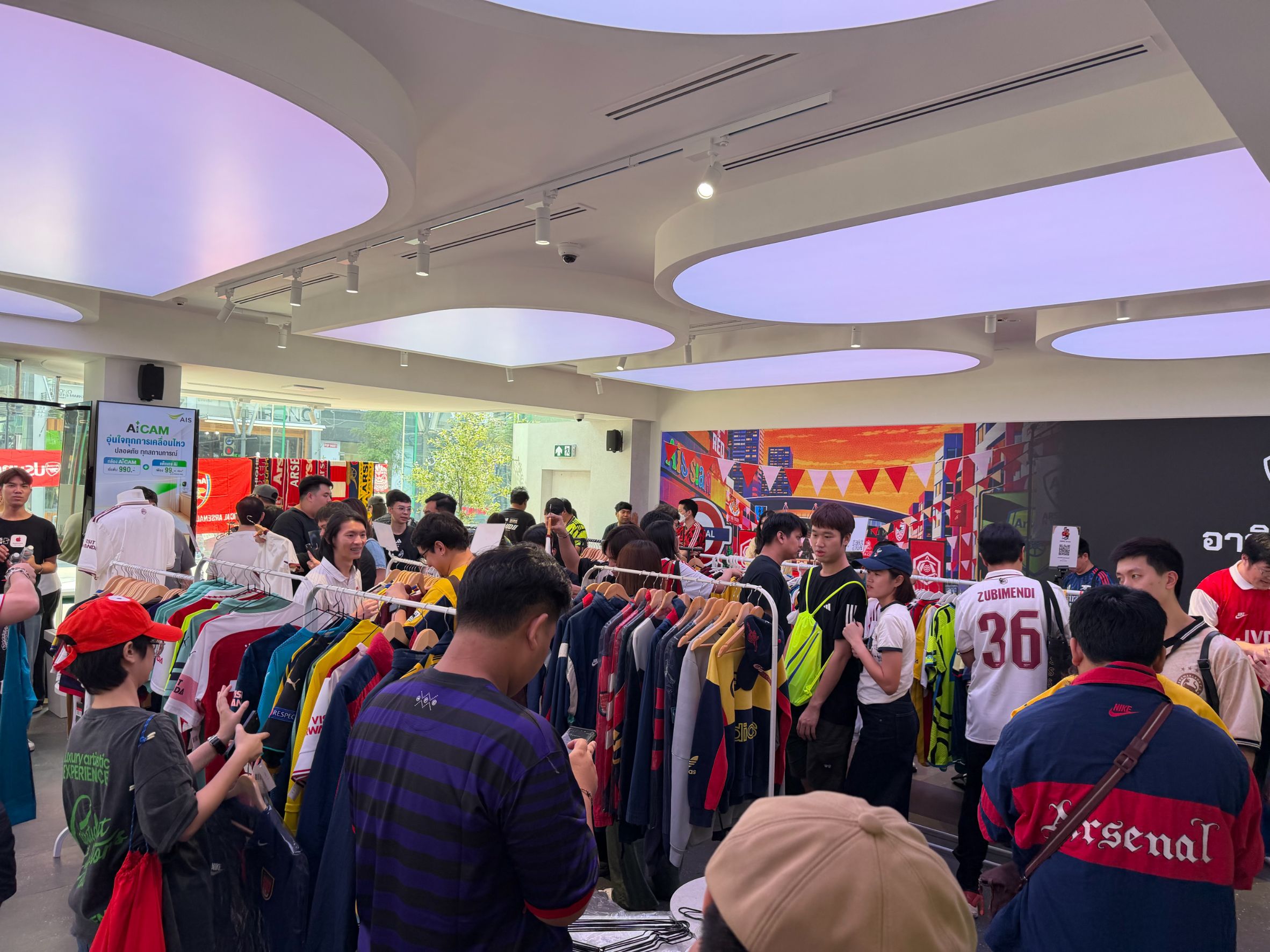 ความพิเศษของงานในครั้งนี้เริ่มต้นความคึกคักตั้งแต่ช่วงกลางวันด้วย Arsenal Flea Market ตลาดนัดของสะสมที่แฟนปืนใหญ่ต้องมี ทั้งเสื้อบอลหายาก เสื้อยืด Fan-made ของสะสม และไอเทมสาย Gooner เพียบ เรียกว่างานนี้ได้แปลงโฉม AIS SIAM ชั้น 1 ให้เป็นจุด PLUG IN และจุดนัดพบแลกเปลี่ยนแพสชันของคอมมูนิตี้แฟนอาร์เซนอลในประเทศไทย ก่อนเริ่มเกมใหญ่ในช่วงค่ำ