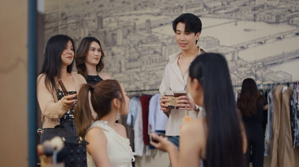 พอข่าวลอยไปถึงหูระฟ้า ท่าที “เป็นห่วงบริษัท” ชัดเจนจนปิดไม่มิด ถึงขั้นต้องออกโรงไปประชุมงานถึงหน้าเซ็ตกองถ่ายภาพนิ่งของซันด้วยตัวเอง และนั่นกลายเป็นโมเมนต์เผชิญหน้าครั้งแรกระหว่าง “ระฟ้า” กับ “พีช” ที่บอกเลยว่าบรรยากาศตึงจนแฟนคลับแทบหยุดหายใจ