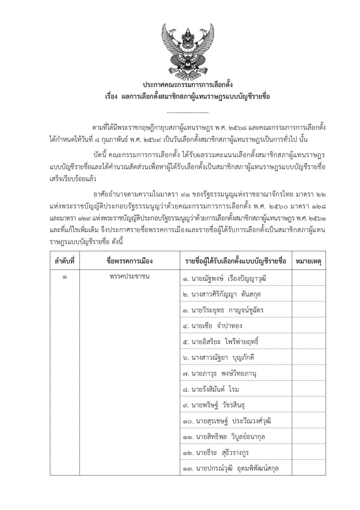 เช็ครายชื่อ 100 สส.บัญชีรายชื่อ หลัง คณะกรรมการการเลือกตั้ง (กกต.) รับรองผลการเลือกตั้งแบบบัญชีรายชื่ออย่างเป็นทางการ พรรคประชาชน มากสุด 32 คน เพิ่มขึ้นมา 1 คนจากก่อนหน้านี้ ส่วน”ประชาธิปัตย์” ลดลง 1 ได้ 11 คน ภูมิใจไทย 19 และ เพื่อไทย 16 เท่าเดิม มี 13 พรรคได้ 1 คน ดังนี้