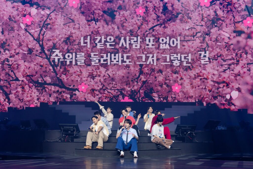 เปิดฉากคอนเสิร์ตอย่างอลังการพร้อมปลุกทุกความรู้สึกให้หวนคืนสู่จุดเริ่มต้นที่เปี่ยมล้นด้วยความตั้งใจแรกของ SUPER JUNIOR (ซูเปอร์จูเนียร์) ในเพลงเดบิวต์ไฟแรง ‘Twins (Knock Out)’ ท่ามกลางทะเลสีเพิร์ลแซปไฟร์บลูที่ส่องสว่างต้อนรับการกลับมา ก่อนจะดึงอารมณ์ให้ตื่นเต้นถึงขีดสุดตั้งแต่ช่วงต้นการแสดง กับเพลงที่ทุกคนคุ้นเคยจนต้องร้องตามกันอย่างสุดเสียงทั้ง ‘U’, ‘Black Suit’ และ ‘MAMACITA (아야야)’ ต่อเนื่องด้วยเพลงที่กระตุ้นความฮึกเหิมให้ปะทุอย่างดุเดือด ‘SUPERMAN’, ‘Super Girl’ และเพลงจากอัลบั้มใหม่ล่าสุดอย่าง ‘Haircut’, ‘Say Less’, ‘I Know’ จากนั้นจึงเข้าสู่ช่วงเพลงที่สื่อความหมายดี ๆ และมีแฟนคลับร่วมร้องคลอไปด้วยกันอย่าง ‘우리들의 사랑 (Our Love)’, ‘너 같은 사람 또 없어 (No Other)’, ‘너로부터 (From U)’ รวมถึงโชว์การประสานเสียงผ่านเพลงบัลลาดซึ้ง ๆ นำความทรงจำที่คิดถึงให้กลับมาชัดเจนอีกครั้งอย่าง ‘잠들고 싶어 (In My Dream)’ และ ‘도로시 (Dorothy)’