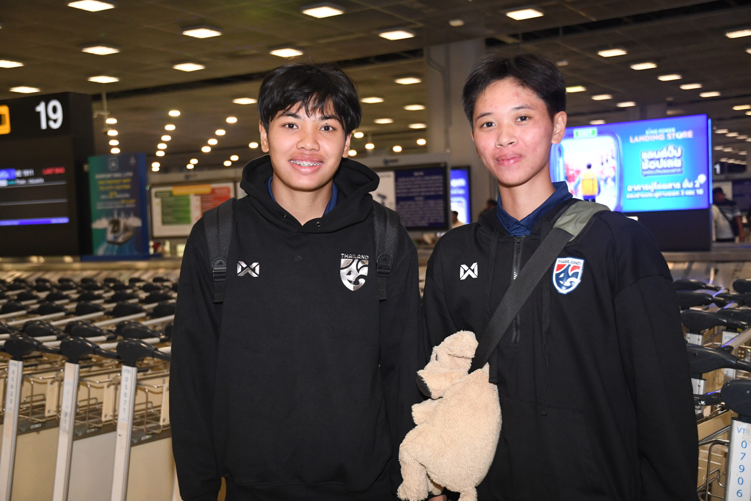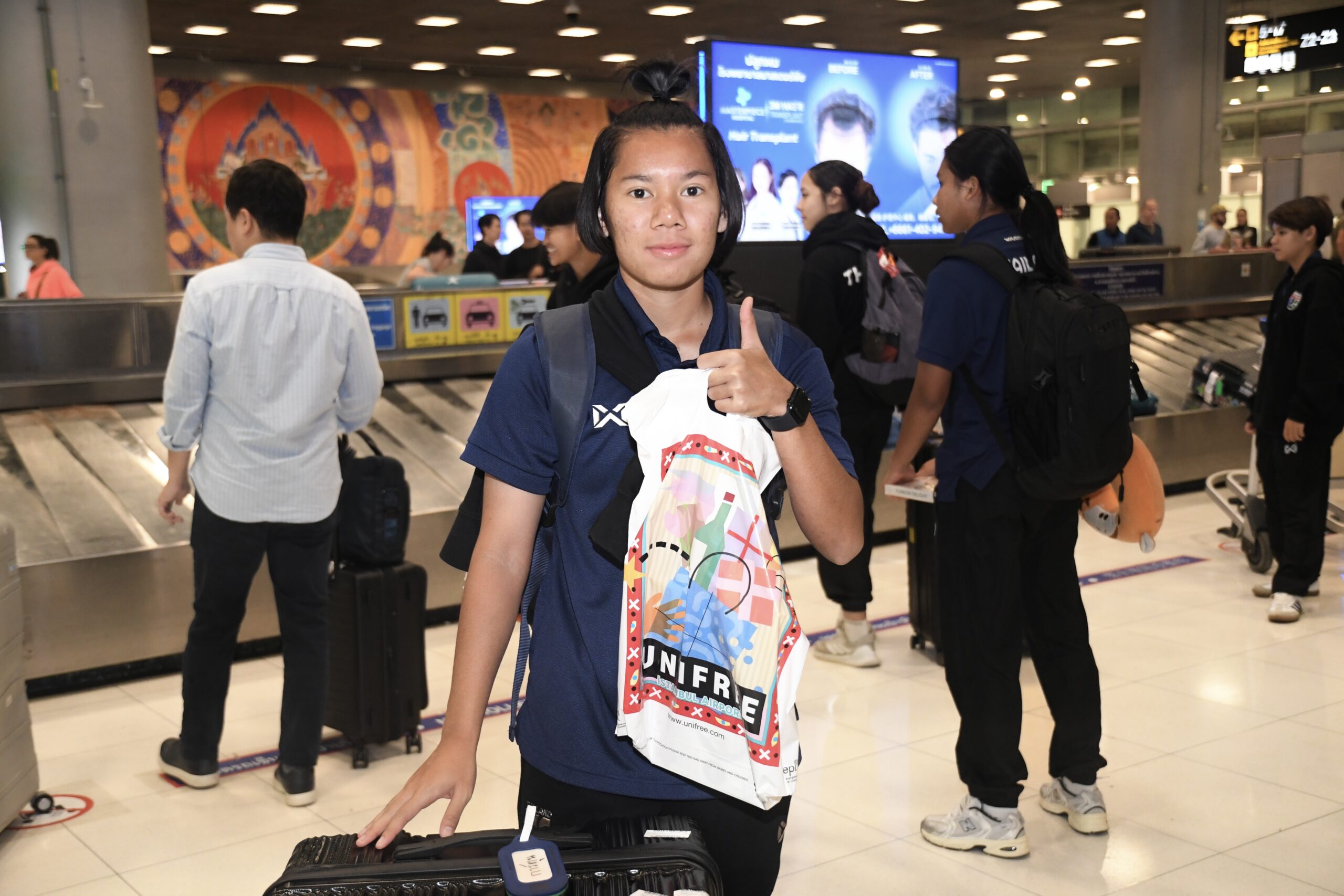 วันที่ 8 มีนาคม 2569 เวลา 05.00 น. ณ ท่าอากาศยานนานาชาติสุวรรณภูมิ ฟุตบอลหญิงทีมชาติไทย รุ่นอายุไม่เกิน 20 ปี เดินทางกลับถึงประเทศไทยเป็นที่เรียบร้อยแล้ว หลังเสร็จภารกิจการแข่งขัน ฟุตบอลอุ่นเครื่องรายการ BEE GIRLS TROPHY 2026 ณ เมืองอัลตันย่า ประเทศตุรกี