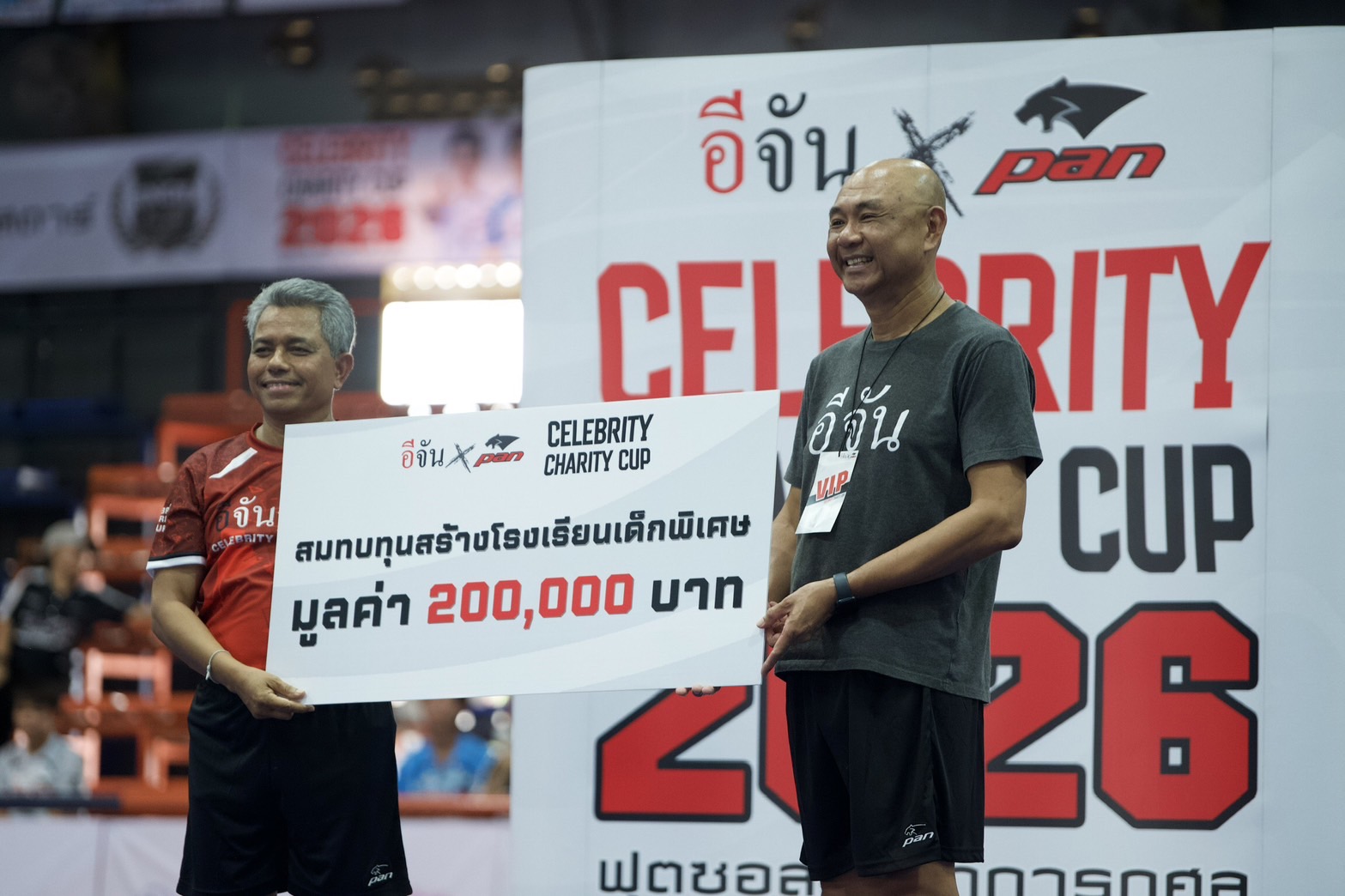 บริษัท บางกอกแอธเลติก จำกัด “แพน” จับมือ “เพจอีจัน” จัดการแข่งขันฟุตซอลการกุศล “อีจัน x Pan Celebrity Charity Cup 2026” เพื่อระดมทุนสร้างโรงเรียนให้เด็กพิเศษในทองผาภูมิ จ.กาญจนบุรี ณ สนามโกดัง สเตเดียม เมื่อวันที่ 8 มีนาคมที่ผ่านมา