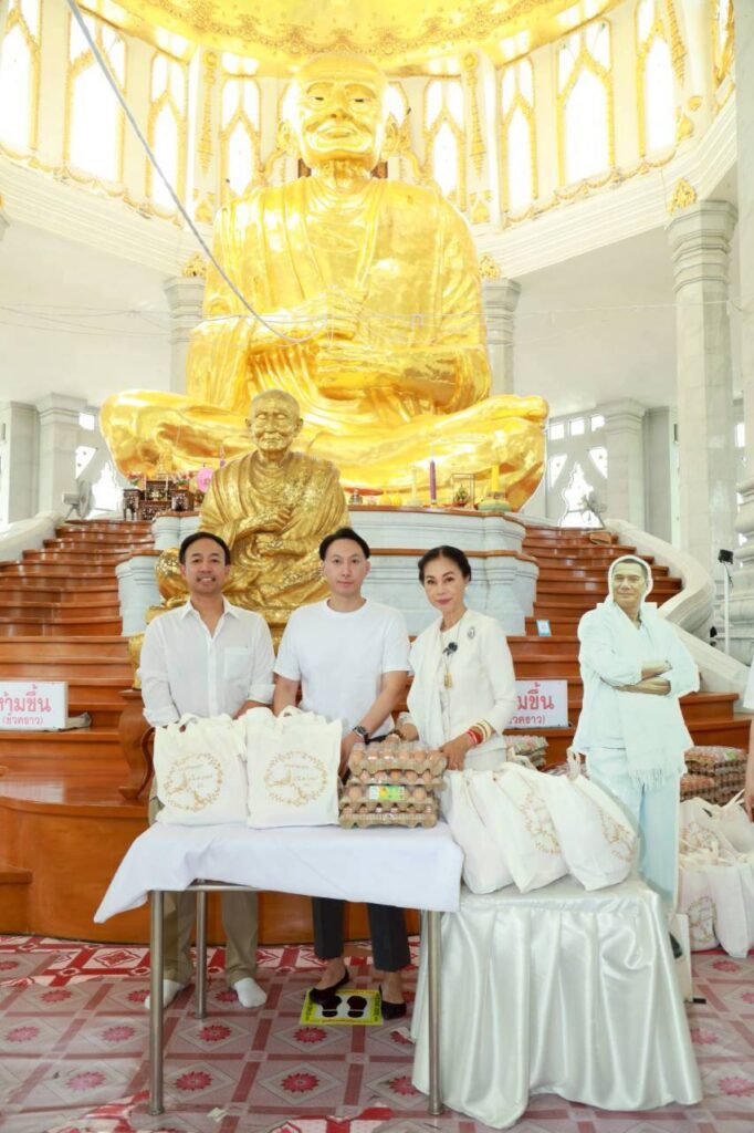 “วันนี้พระมาเยอะมากทั้งนิมนต์และไม่ได้นิมนต์ เป็นที่อัศจรรย์มาก และปีนี้พิเศษสุดคือนำรูปปั้นกลับบ้าน ซึ่งมาถึงเมี่อวันที่ 9 มี.ค. ก็มีพิธีสวดพุทธมนต์ต้อนรับ รูปปั้นเพิ่งทำเมื่อปลายปีที่แล้ว เพราะเมื่อ 4 ปีที่ผ่านมาจิตใจพวกเรายังไม่เข้มแข็ง พอทุกอย่างดีขึ้นก็ค่อยๆ เดินตามสเต็ปที่เคยคุยกับพี่เอกไว้ ปีที่แล้วเลยติดต่อช่างว่าจะปั้นรูปพี่เอก ใช้เวลาเป็นปีกว่าจะปั้นเสร็จ เรานำรูปปั้นมาที่นี่เพราะเป็นบ้านที่พี่เอกเลือก สถานที่นี้เป็นสถานที่ๆ เค้าใช้ในการสร้างบุญบารมี สร้างสถาปัตยกรรมของแผ่นดินให้คนไทยทั้งชาติ พี่เอกจะอยู่ตรงนี้ให้แฟนๆ ได้เห็นกันตรงจุดต้อนรับประชาชน ตอนไปรับก็บอกพี่เอกว่ากลับบ้านนะ สำหรับชุดที่เลือกให้ปั้นจะเหมือนกับที่พี่เอกใส่ เสื้อสีขาวมีผ้าคล้องคอ เรารู้สึกว่ารูปปั้นเหมือนเป็นตัวแทนจิตวิญญาณของเค้า เป็นเหมือนตัวจริงที่ทุกคนมาสัมผัสได้”