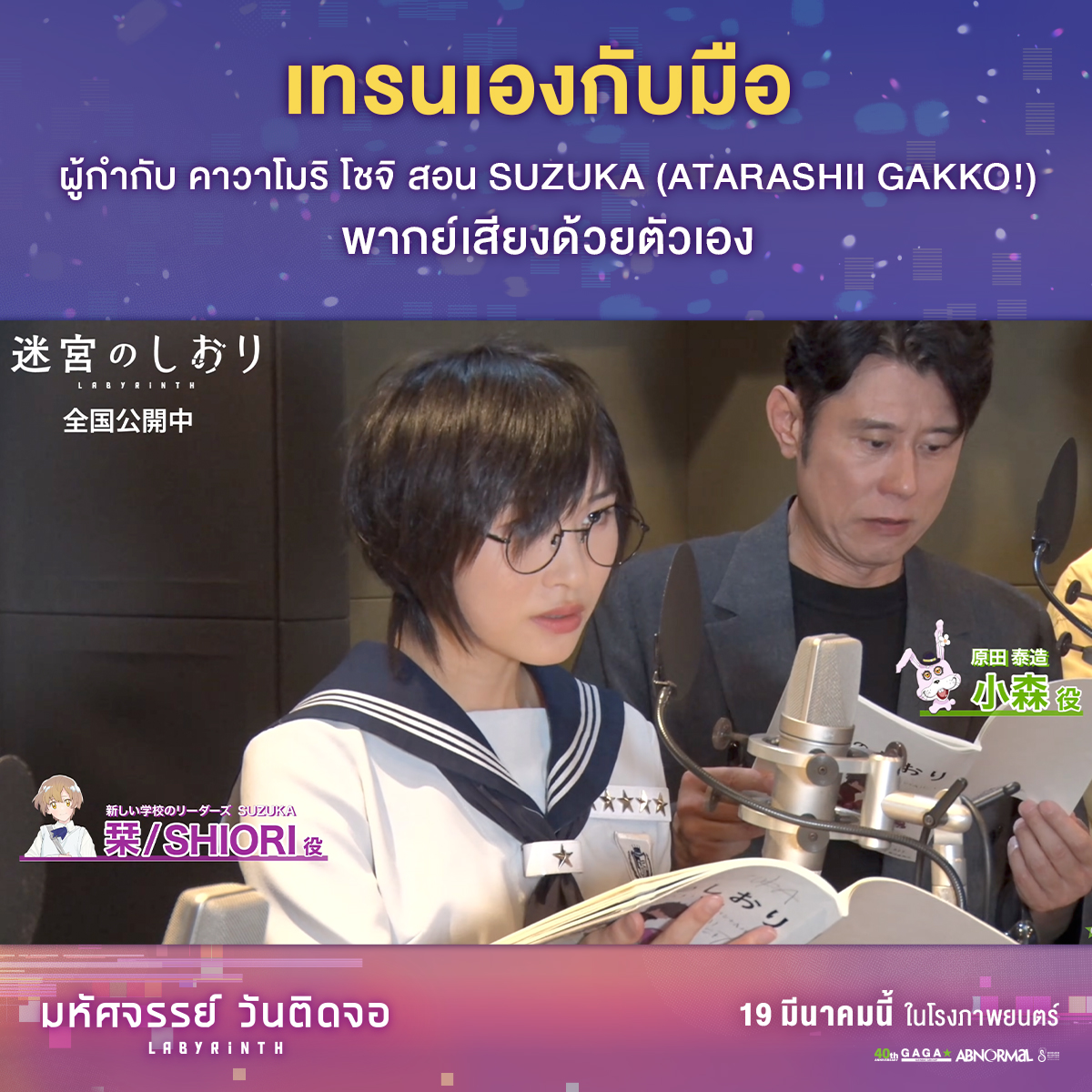 ก่อนก้าวเข้าสู่โลกแห่งการผจญภัยใน “LABYRINTH: มหัศจรรย์ วันติดจอ” มาเปิดโปรไฟล์ 6 ตัวละครพร้อมทำความรู้จักไปพร้อมกัน นำโดย “มาเอะซาวะ ชิโอริ” ภายนอกสดใสแต่กลับเป็นคนไม่มั่นใจในตัวเอง และ “SHIORI@REVOLUTION” มาพร้อมความสดใสและคิดบวก “อีกตัวตน” ที่ปรากฏขึ้นบนโลกโซเชียล ที่ได้ SUZUKA (ATARASHII GAKKO!) มาพากย์เสียงตัวละคร ด้าน “คางามิ สุงุรุ” นักสังเกต ที่มีความเฉียบแหลม พากย์เสียงโดย เทรานิชิ ทาคุโตะ หนุ่มหล่อแห่งวง Timelesz, “คุราชินะ คิราระ” พูดสิ่งที่คิดออกมาตรงๆ สดใส หมกมุ่นกับสิ่งที่ชอบมากๆ ได้ อิโต้ อาโออิ มาพากย์เสียง สำหรับ “ยามาดะ เคนโตะ” ร่าเริง ว่องไว ชอบทำให้บรรยากาศรอบข้างสนุกสนาน ให้เสียงพากย์โดย ไซโต้ จุน และ “โคโมริ” ไม่ชอบความขัดแย้ง และการทะเลาะกัน แต่สามารถปรับตัวให้กับสถานการณ์ต่างๆ ที่ได้ ฮาราดะ ไทโซ มาร่วมพากย์เสียงในครั้งนี้