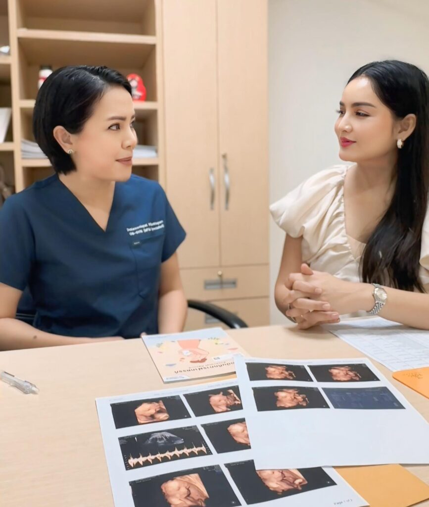 ผลตรวจจากแพทย์ระบุว่า น้ำหนักเบบี๋ 1,356 กรัม อยู่ในเกณฑ์มาตรฐาน ปริมาณน้ำคร่ำดี รกเกาะตำแหน่งปกติ และการไหลเวียนเลือดไปเลี้ยงสายสะดือดี โดยภาพรวมแพทย์ประเมินว่า สุขภาพของทารกในครรภ์แข็งแรงสมบูรณ์ดี