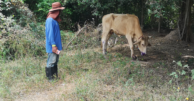 นายเกตุ วงศ์เณร อายุ 64 ปี ชาวบ้านหมู่ 9 บ้านมะขามโพรง ต.เกาะหลัก อ.เมืองประจวบคีรีขันธ์ จ.ประจวบคีรีขันธ์ เกษตรกรเลี้ยงวัว กล่าวว่า ตนมีอาชีพเลี้ยงวัวมากว่า 40 ปี ไม่เคยพบการระบาดของโรคปากเท้าเปื่อยรุนแรงเช่นนี้มาก่อน โดยวัวของตนติดเชื้อโรคปากเท้าเปื่อยจากฝูงวัวข้างเคียง ส่งผลให้วัวเกือบทั้งฝูงเป็นโรค 9 ตัว ส่วนอีก 1 ตัว ยังไม่ติดต้องแยกกันเลี้ยง ซึ่งในรอบปีนี้มีการแพร่เชื้อติดกันหลายฝูง ก่อนหน้าเมื่อสองอาทิตย์ก่อนฝูงวัวของเพื่อนตนเริ่มเป็นก่อน และกระจายเชื้อมายังฝูงของตน เนื่องจากมีการเลี้ยงในทุ่งหญ้าใกล้เคียงกัน และกินน้ำจากแหล่งน้ำธรรมชาติแหล่งเดียวกันจึงทำให้ติดเชื้อ เริ่มแรกวัวไม่สบาย ไม่กินอาหาร ปากและเท้าเริ่มเปื่อย จากนั้นจึงให้สัตว์แพทย์ที่มาฉีดยาฝูงวัวฝูงแรกที่ติดไปก่อนหน้านั้น ตรวจอาการแล้วจึงพบว่าเป็นโรคปากเท้าเปื่อย ซึ่งการรักษาคือต้องทำความสะอาดทุกวันและฉีดยาฆ่าเชื้อ ขณะนี้อาการวัวทั้ง 9 ตัว มีอาการทุเลา แต่ยังไม่ดีขึ้นเท่าที่ควร หลายตัวไม่กินอาหาร ทำให้รูปร่างผอมซูบ น้ำลายยืด มีอาการซึม ซึ่งทุกปีชาวบ้านจะฉีดวัคซีนป้องกันเชื้อโรคปากเท้าเปื่อยอยู่แล้ว แต่ปีนี้รุนแรงหวั่นว่าเชื้อจะแพร่กระจายไปมากกว่านี้ เพราะเกษตรกรบางรายยังไม่ทราบว่าเกิดการระบาดในพื้นที่ยังคงเลี้ยงรวมฝูงกันอยู่ ซึ่งฝูงใหญ่ของเพื่อนตนมีวัวอยู่กว่า 60 ตัว หากเชื้อติดตัวใดตัวหนี่งก็จะทำให้ทั้งฝูงติดกันหมด ทั้งนี้ในละแวกนี้มีการเลี้ยงวัวเนื้อพันธุ์ชาโรเล่ บราห์มัน และวัวไทย เกือบ 300 ตัว มีเกษตรกร 20 ครัวเรือน จึงอยากให้เจ้าหน้าที่ปศุสัตว์ ให้ความช่วยเหลือฉีดวัคซีนป้องกัน และรักษาตัวที่ติดโรคให้หายขาด เพราะเกษตรกรทุกข์ใจหากสัตว์เลี้ยงป่วยและอาจตายได้
