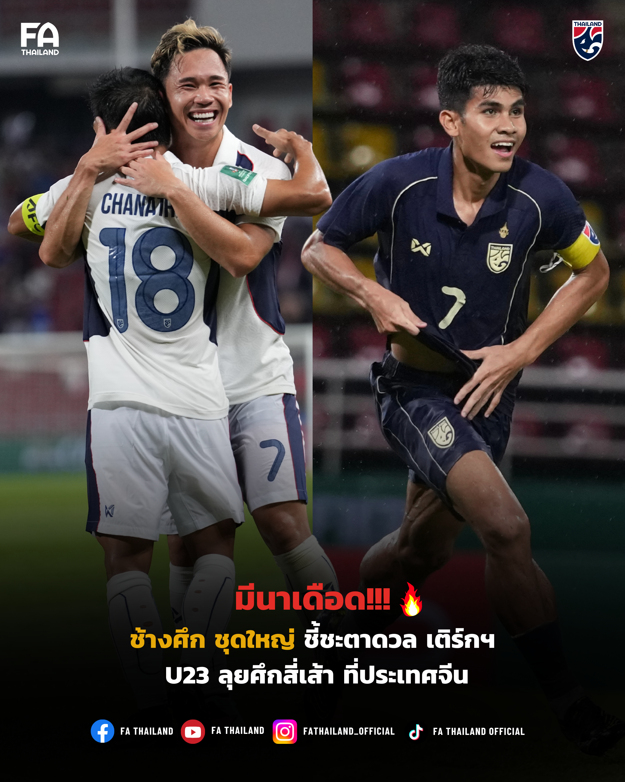 ในเดือนมีนาคม มีโปรแกรมฟุตบอลทีมชาติไทย ให้ลุ้น ให้เชียร์กันถึงสองชุด เริ่มจาก ทีมชาติไทย รุ่นอายุไม่เกิน 23 ปี (U23) ที่เดินทางไปลุยศึกฟุตบอลอุ่นเครื่อง 4 เส้า รายการ “CFA Team China International Youth Tournament Xi’an” ที่เมืองซีอาน ประเทศจีน ระหว่างวันที่ 25-31 มีนาคม 2569 ในช่วงฟีฟ่าเดย์ เพื่อเตรียมความพร้อมสำหรับเอเชียนเกมส์ 2026 โดยทีมที่เข้าร่วมประกอบด้วย จีน (เจ้าภาพ), ไทย, เวียดนาม และ เกาหลีเหนือ