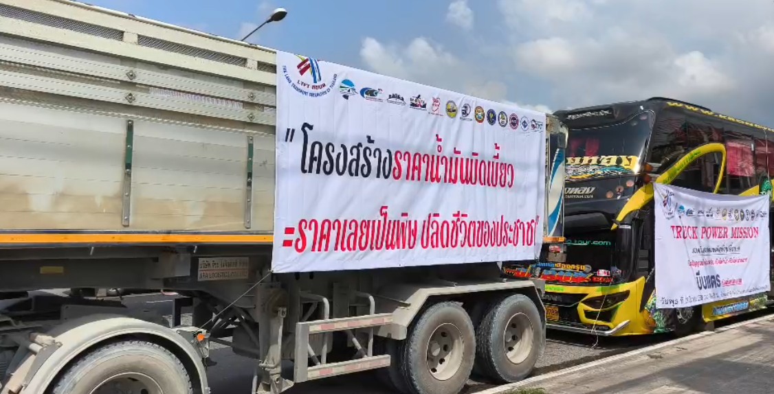 รถบรรทุกรวมตัว จี้รัฐแก้ปัญหาน้ำมันแพง-ขาดแคลน