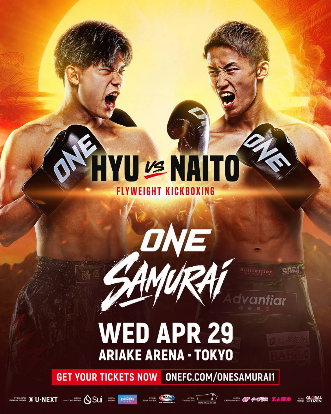 ประกาศออกมาอีกหนึ่งคู่อย่างเป็นทางการสำหรับอีเวนต์ใหญ่ศึก ONE Samurai 1 ที่จะเสิร์ฟความมันในวันพุธที่ 29 เม.ย.นี้ ณ สนามอาริอาเกะ อารีนา กรุงโตเกียว ประเทศญี่ปุ่นโดยเป็นการโคจรมาพบกันของนักชกเจ้าถิ่นทั้งคู่ เมื่อดาวรุ่งฟอร์มแรง “ฮิว” วัย 23 ปี เตรียมวัดคมรุ่นพี่จอมเก๋า “ทาอิกิ นาอิโตะ” วัย 30 ปี ภายใต้กติกาคิกบ็อกซิ่ง รุ่นฟลายเวต (125-135 ป.)
