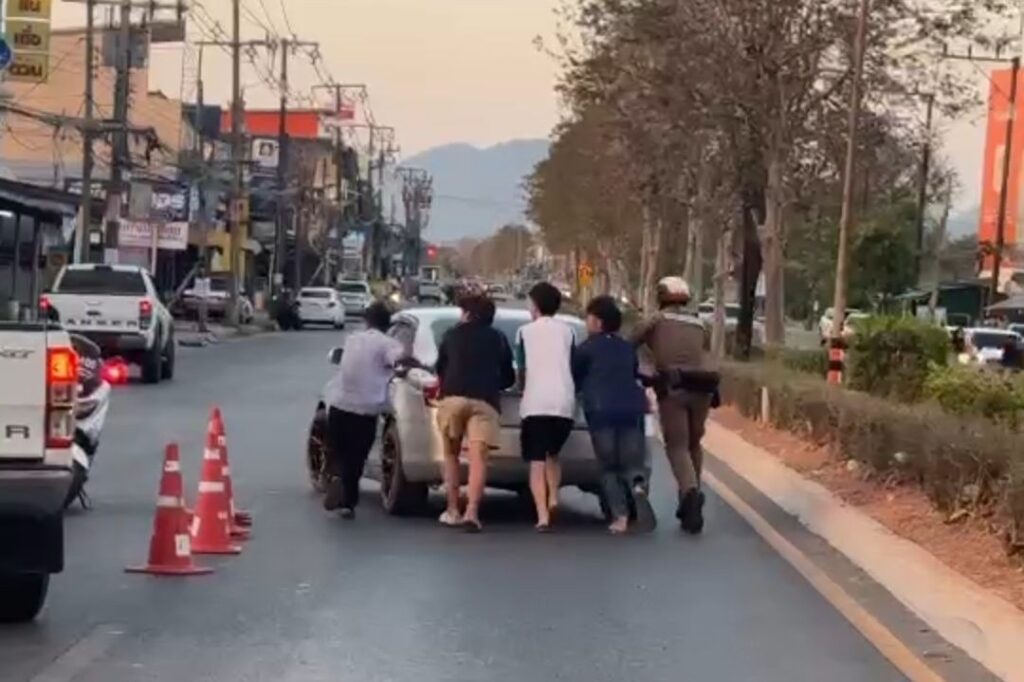 ภาพประทับใจกลางวิกฤตน้ำมัน! ตำรวจจราจรสตูลช่วยเข็นรถน้ำมันหมดเข้าปั๊ม ท่ามกลางคิวยาวเหยียด ชาวบ้านโอดเดือดร้อนหนัก