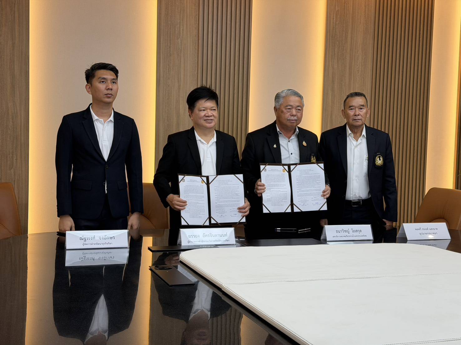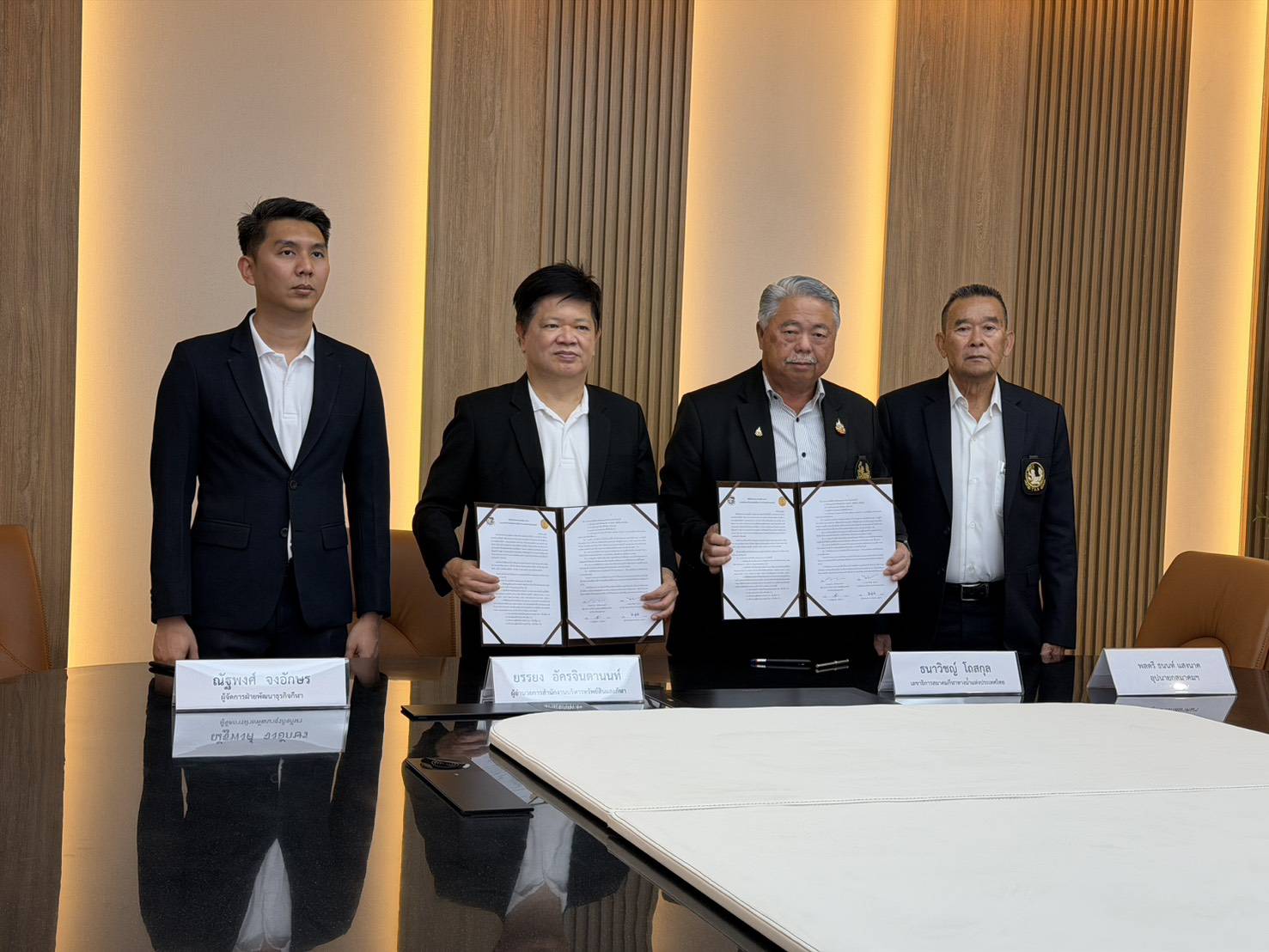 ตามนโยบายของ ร.อ.ธรรมนัส พรหมเผ่า นายกสมาคมกีฬาทางน้ำแห่งประเทศไทย ที่ต้องการพัฒนาเยาวชน และยกระดับกีฬากระโดดน้ำ จึงมอบหมายให้ พล.ต.ดร. ธนนท์ แสงนาค อุปนายกสมาคมกีฬาทางน้ำแห่งประเทศไทย, “โค้ชตึก“ นายธนาวิชญ์ โถสกุล เลขาธิการสมาคมกีฬาทางน้ำแห่งประเทศไทย และ ผู้ช่วยศาสตราจารย์ มานะ ภู่หลำ ผู้อำนวยการสมาคม ลงนามความร่วมมือ MOU (เอ็มโอยู) กับ มหาวิทยาลัยธรรมศาสตร์ ที่มี ยรรยง อัครจินดานนท์ ผู้อำนวยการสำนักงานบริหารทรัพย์สินและกีฬา ม.ธรรมศาสตร์ และ ณัฐพงศ์ จงอักษร ผู้จัดการฝ่ายพัฒนาธุรกิจกีฬา ม.ธรรมศาสตร์ ร่วมลงนาม ที่ยิมเนเซี่ยม 7 ม.ธรรมศาสตร์ รังสิต เมื่อวันที่ 24 มี.ค.