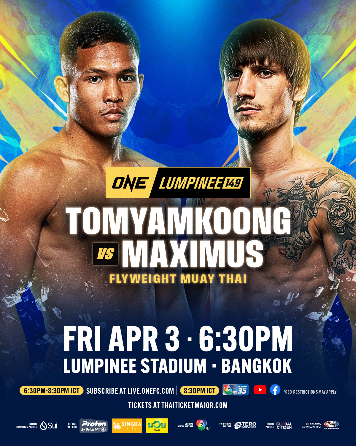 เปิดโปรแกรมมันต้อนรับหน้าร้อน ในศึก ONE ลุมพินี 149 โดยคู่เอก “ต้มยำกุ้ง ภูมิใจไทย” มวยฟอร์มสด วัย 21 ปี จากสุรินทร์ กลับมาสานต่อฟอร์มเก่ง โดยเตรียมรับมือน้องใหม่ “เบเจนูซา มักซิมุส” มวยดีกรีแน่น วัย 23 ปีจากมอลโดวา ภายใต้กติกามวยไทย รุ่นฟลายเวต (125-135 ป.) ซึ่งจะสู้กันในวันศุกร์ที่ 3 เม.ย. นี้ ณ สนามมวยเวทีลุมพินี (รามอินทรา) ถ่ายทอดสดสู่สายตาแฟนมวย 195 ประเทศทั่วโลก