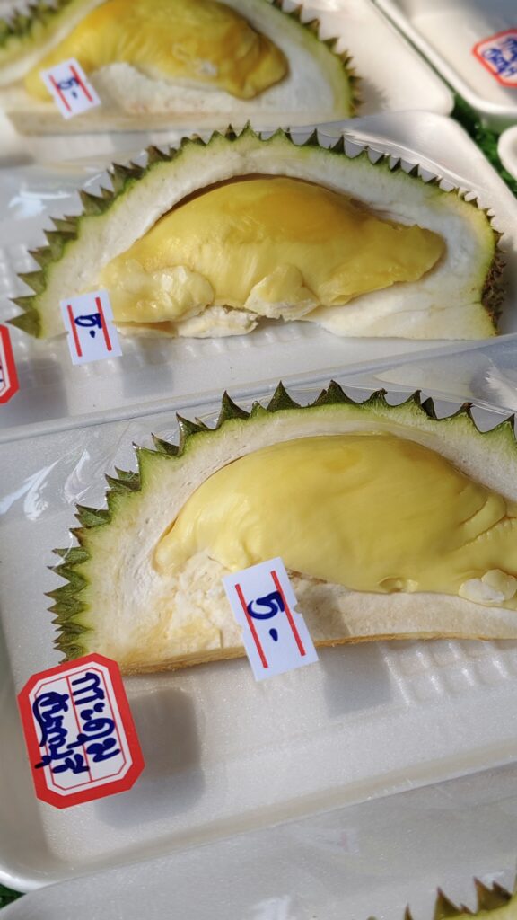 ที่ริมถนนสาย 304 นครราชสีมา – กบินทร์บุรี ขาเข้าตัวเมือง บ้านโนนค่าง ต.อุดมทรัพย์ อ.วังย้ำเขียว จ.นครราชสีมา นายมนตรี ผิวผ่อง อายุ 42 ปี พ่อค้าขายทุเรียน ยังคงรับทุเรียนจากจ.ชลบุรี มาวางขายให้กับลูกค้าในพื้นที่ ในราคาย่อมเยา โดยแกะวางขายเริ่มต้นตั้งแต่ราคา 5 บาท ไปจนถึงหลักร้อย เพื่อเปิดโอกาสให้ผู้มีรายได้น้อย ได้ชิมทุเรียนชุดแรกของปีแบบสบายกระเป๋าในช่วงเศรษฐกิจกำลังฝืดเคืองและหลายคนกังวลปัญหาหลายด้าน โดยเฉพาะเรื่องของการสู้รบในตะวันออกกลาง และสินค้าบางตัวขาดแคลน กับราคาน้ำมันที่พุ่งสูง
