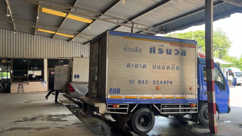 ที่โรงงานน้ำแข็ง-น้ำดื่ม ศรีนวล ซึ่งตั้งอยู่ริมถนนมิตรภาพสายเก่า ต.เมืองเก่า อ.เมือง จ.ขอนแก่น ยังคงมีรถน้ำแข็งและรถน้ำดื่มจำนวนมากของทางบริษัทฯ ทยอยกันมาบรรจุน้ำแข็งและน้ำดื่ม เพื่อนำไปส่งให้กับลูกค้าตามคำสั่งซื้อที่มีมาอย่างต่อเนื่องทุกวัน อันมีผลมาจากสภาพอากาศที่ร้อนจัดทำให้ลูกค้าบริโภคน้ำแข็งและน้ำดื่มกันเพิ่มมากขึ้น ซึ่งแม้ว่าบริษัทฯจะประสบปัญหากับสถานการณ์ราคาน้ำมันที่สูงขึ้นแบบก้าวกระโดด รวมทั้งสถานการณ์ภาวะขาดแคลนน้ำมัน