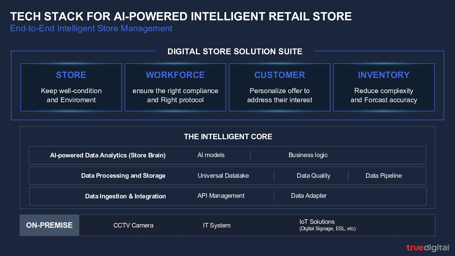 ทรู คอร์ปอเรชั่น ได้นำเสนอแนวทางการยกระดับธุรกิจค้าปลีกสู่ “Intelligent, Data-Driven Ecosystem” ผ่านการผสาน AI และเทคโนโลยีดิจิทัลอย่างครบวงจร โดยมีไฮไลต์สำคัญ ได้แก่