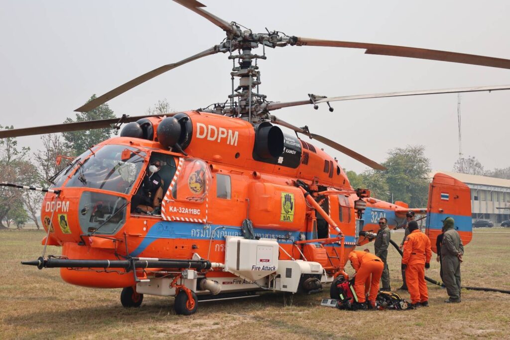 โดยได้จัดอากาศยานแบบ KA-32 ของกรมป้องกันและบรรเทาสาธารณภัย เข้าสนับสนุนการดับไฟป่าในพื้นที่อุทยานแห่งชาติศรีลานนา อำเภอแม่แตง จังหวัดเชียงใหม่ อย่างไรก็ตาม เนื่องจากสภาพทัศนวิสัย ในการบินไม่เอื้ออำนวย อาจส่งผลกระทบต่อความปลอดภัยของอากาศยาน จึงยังไม่สามารถปฏิบัติการบินทิ้งน้ำได้ในระยะนี้
