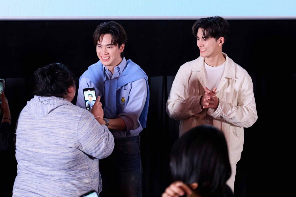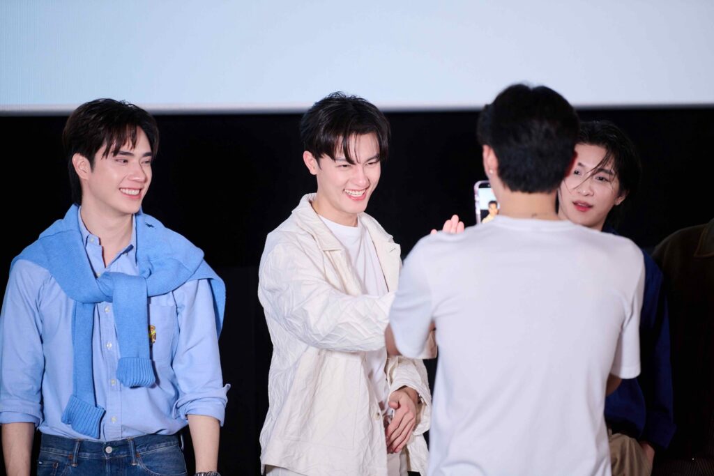 บรรยากาศภายในงานอบอวลไปด้วยมวลความสุขของแฟนๆ ทันทีที่ มาสุ จรรยางค์ดีกุล, ตี๋ ธนพล, ต้า นันคุน, อัส นิติธร, แดนนี่ ลูเซียโน่ และ วิน ธนัท ปรากฏตัวบนเวที เสียงกรี๊ดก็ดังสนั่นฮอลล์ ก่อนจะทักทายแฟนๆ อย่างเป็นกันเอง พร้อมเสิร์ฟเคมีชวนใจสั่นแบบไม่มีกั๊ก ทั้งสายตา จังหวะโต้ตอบ และการแซวกันไปมา เรียกเสียงเชียร์และรอยยิ้มได้ตลอดทั้งงาน ไฮไลต์สำคัญอยู่ที่การรับชม EP.5 ไปพร้อมกัน ซึ่งเป็นตอนที่ความสัมพันธ์ของแต่ละคู่พุ่งทะลุทุกขีดจำกัด เคมีชัด โมเมนต์มาเต็ม ดันอารมณ์คนดูให้ลุ้นตามทุกจังหวะ ตลอดการฉายเต็มไปด้วยเสียงกรี๊ด เสียงฮือฮา และเสียงลุ้นที่ดังแทรกเป็นระยะ ขณะที่ฝั่งนักแสดงก็นั่งดูไป เขินไป แซวกันเองไม่หยุด กลายเป็นอีกหนึ่งโมเมนต์เรียลที่แฟนๆ กรี๊ดไม่แพ้ฉากบนจอ หลังจบการรับชม นักแสดงได้ขึ้นเวทีพูดคุยแชร์ความรู้สึกถึง EP.5 พร้อมเมาท์เบื้องหลังจากกองถ่ายแบบพอหอมปากหอมคอ ก่อนจะต่อด้วยช่วงถ่ายภาพร่วมกับแฟนคลับอย่างใกล้ชิด และปิดท้ายด้วยกิจกรรมไฮทัช เปิดโอกาสให้แฟนๆ ได้ทักทายแบบตัวต่อตัว ทิ้งท้ายความประทับใจแบบเต็มอิ่ม