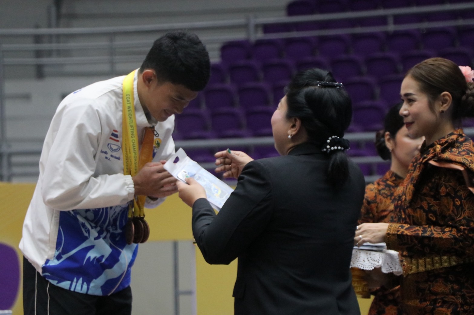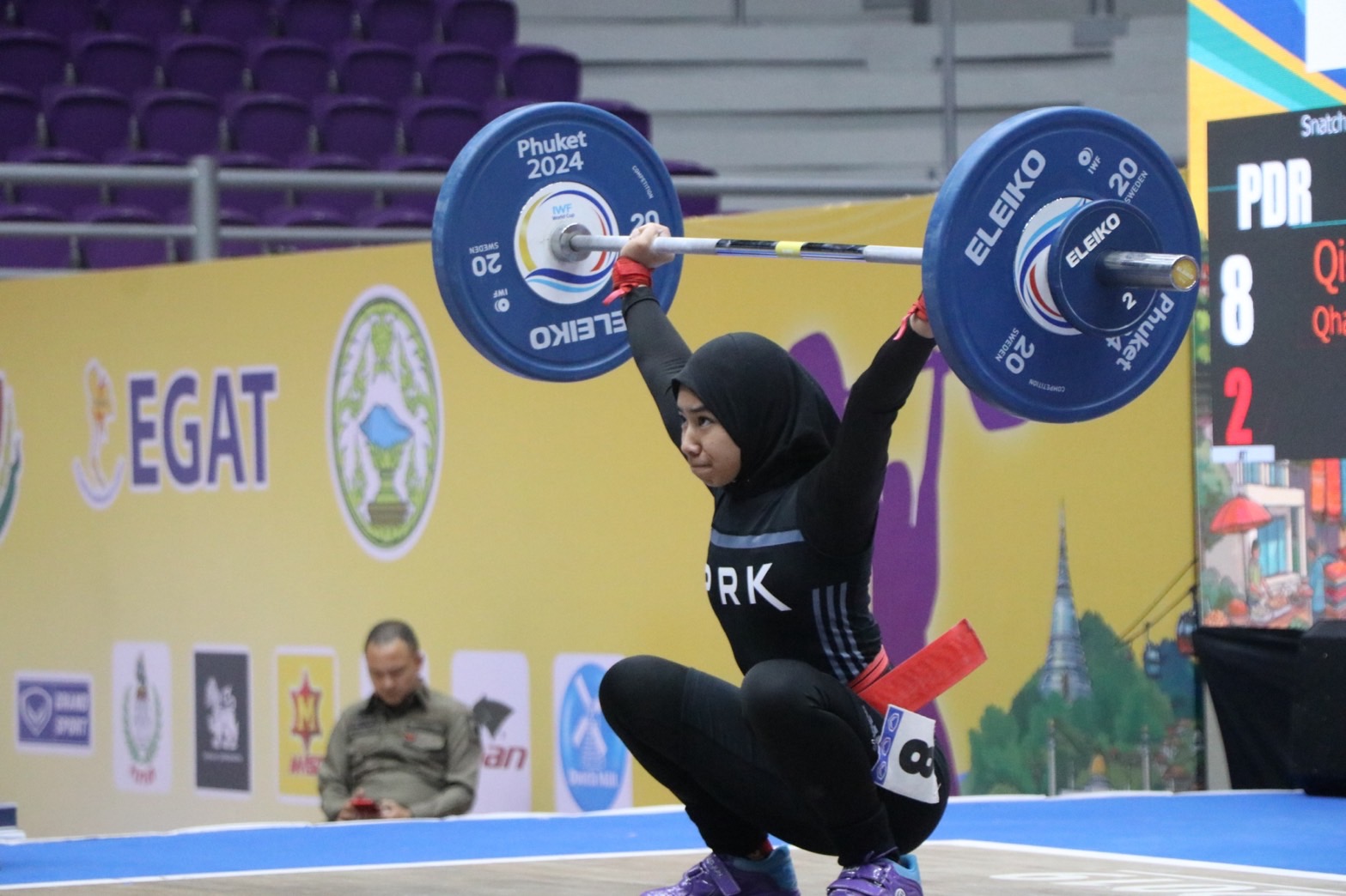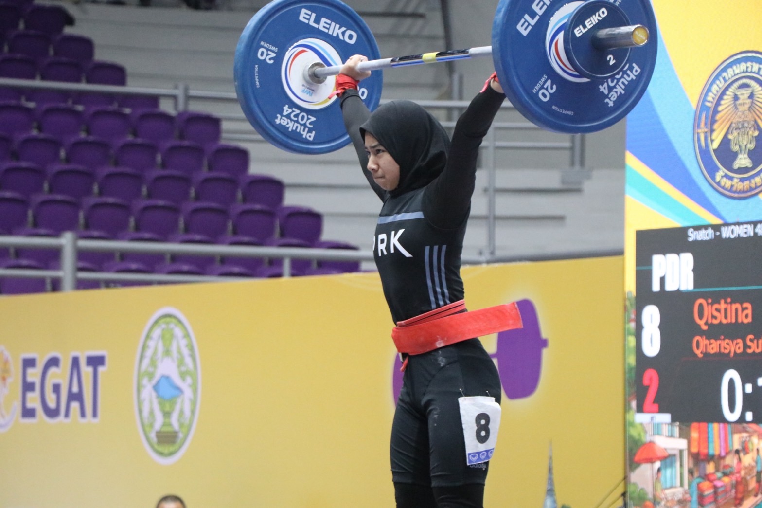 - คิสตินา การิสยา เซอร์เฟีย โมห์ด มูซานี จากสโมสรเปรัก ดารูล ริดซวน แห่งประเทศมาเลเซีย รับ 1 เหรียญเงิน ท่าสแนทช์ 66 กิโลกรัม และ 2 เหรียญทองแดง ท่าคลีนแอนด์เจิร์ก 84 กิโลกรัม, น้ำหนักรวม 150 กิโลกรัม