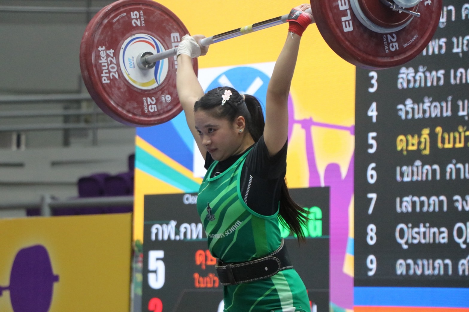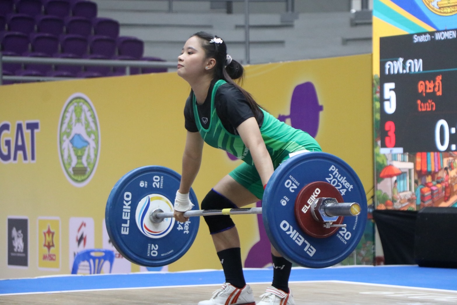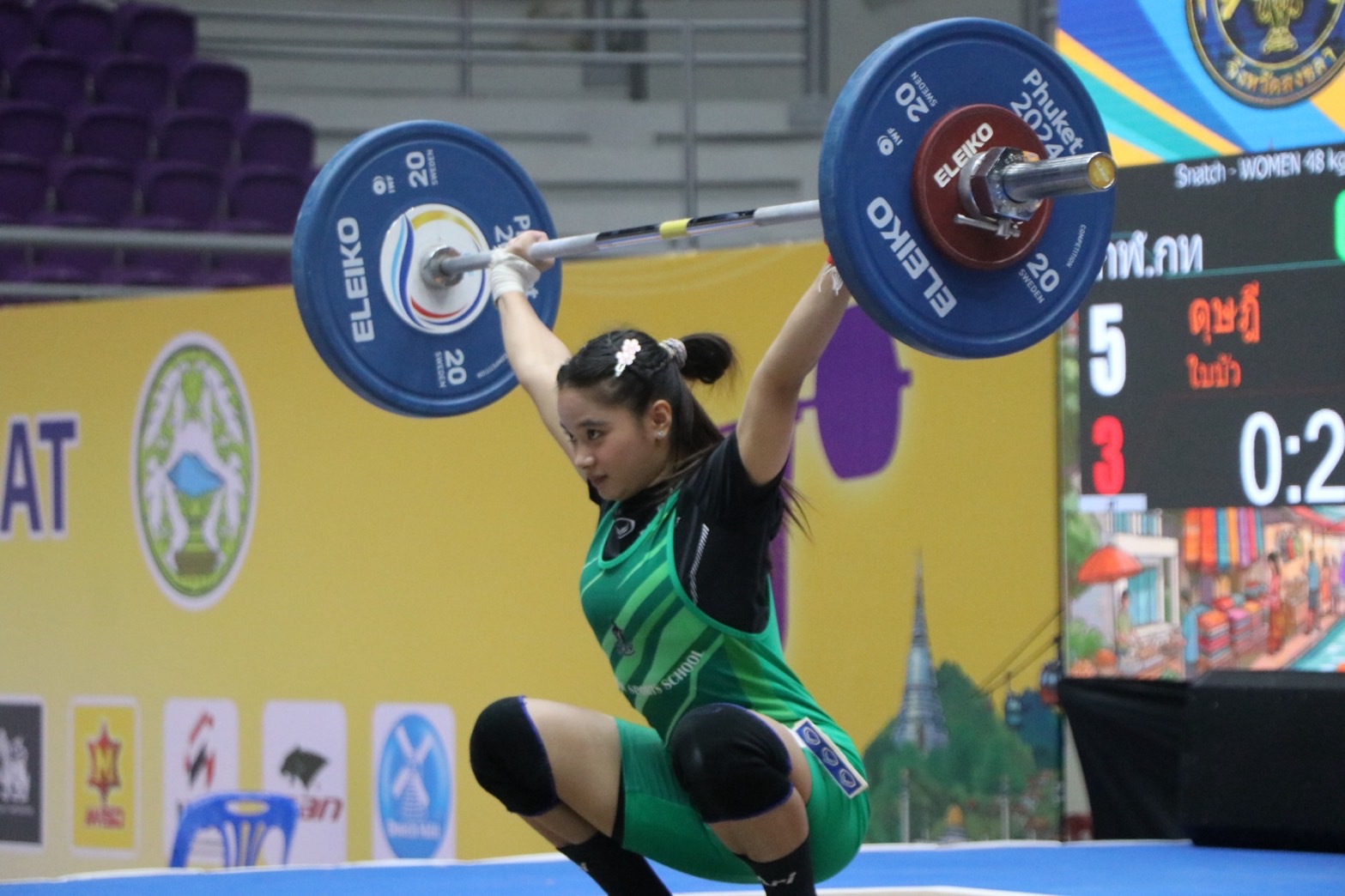 - เขมิกา กำเนิดศรี จากโรงเรียนกีฬาจังหวัดชลบุรี เอ รับ 3 เหรียญทอง ท่าสแนทช์ 77 กิโลกรัม, ท่าคลีนแอนด์เจิร์ก 95 กิโลกรัม, น้ำหนักรวม 172 กิโลกรัม/