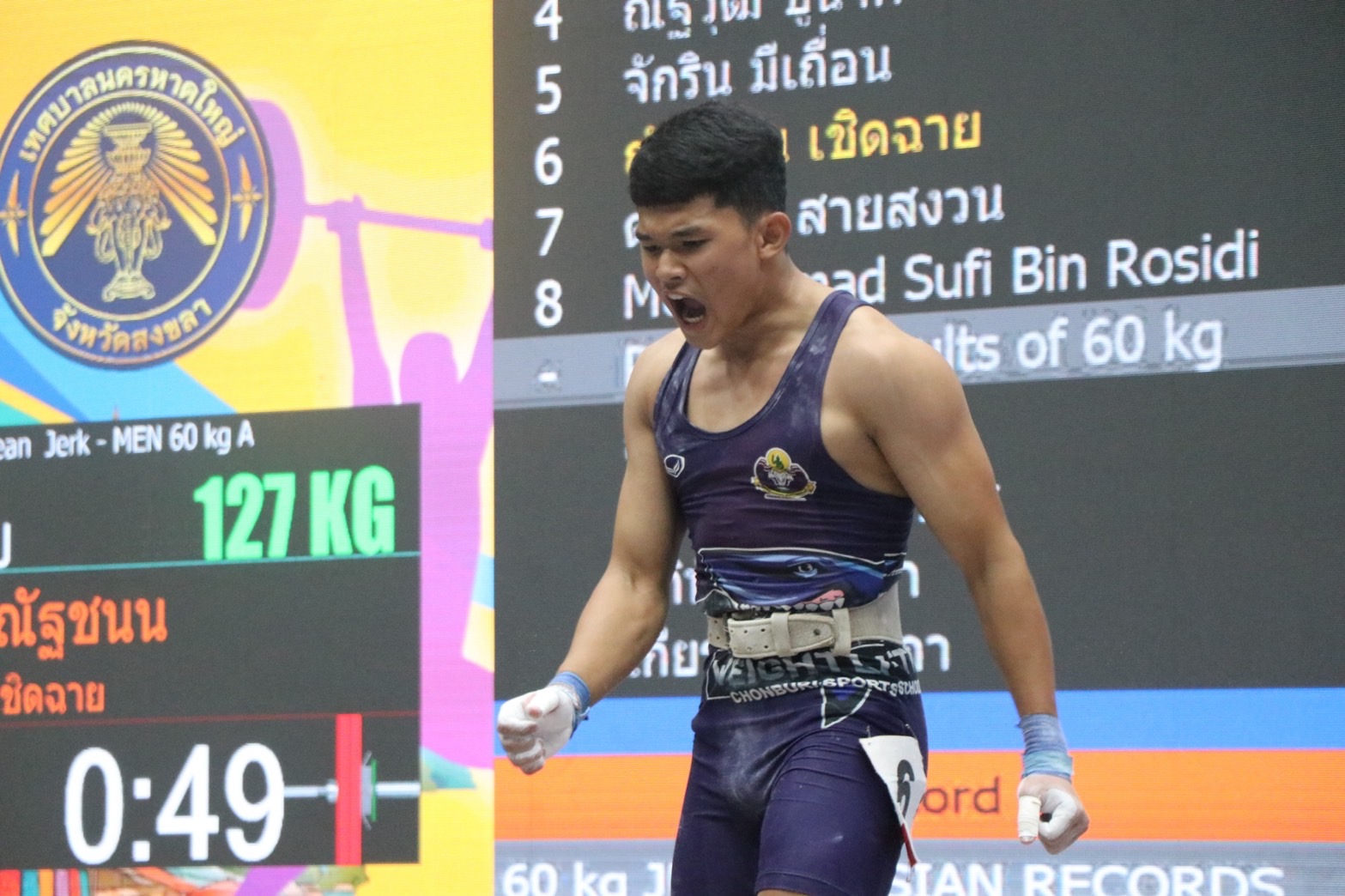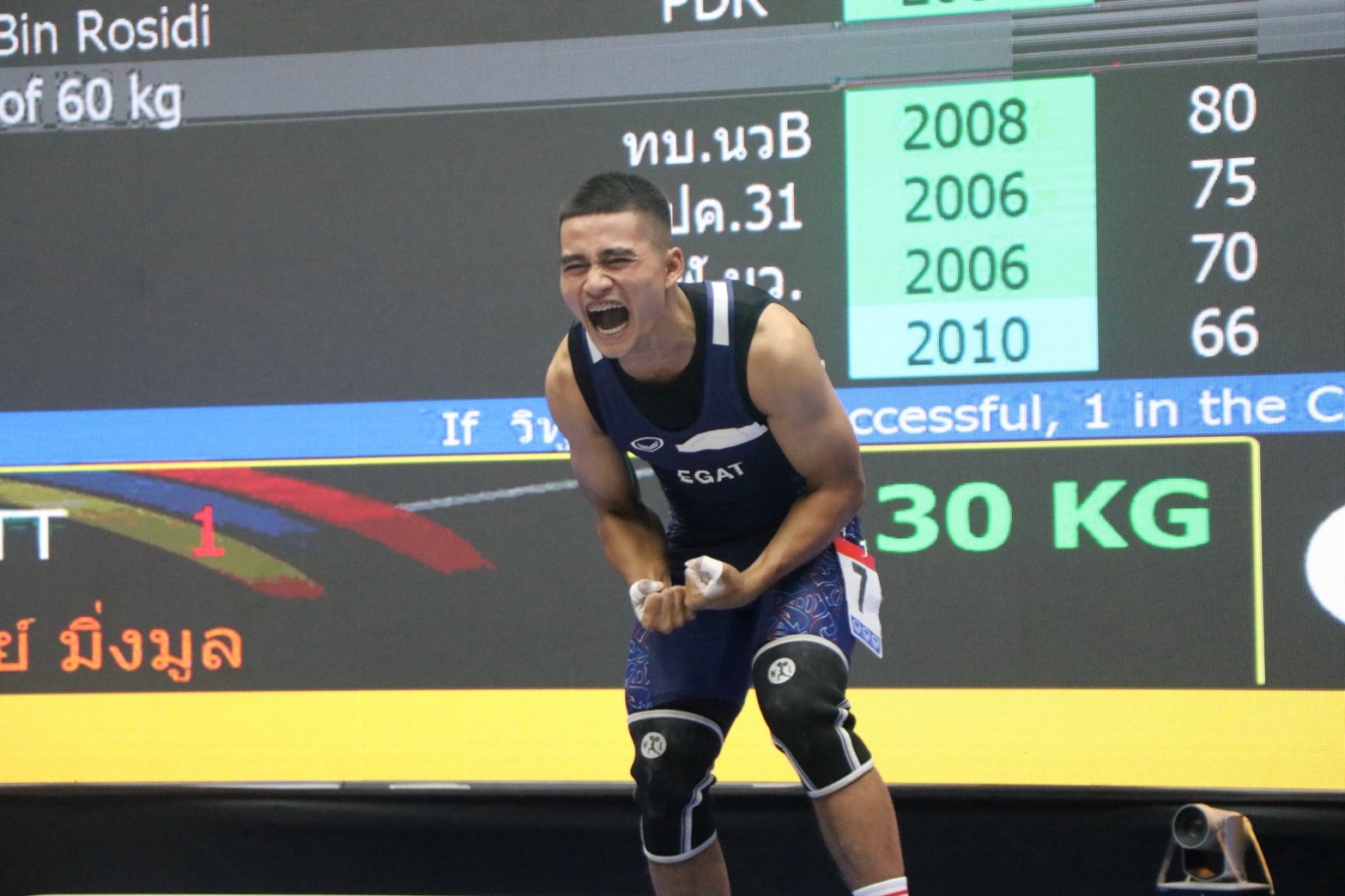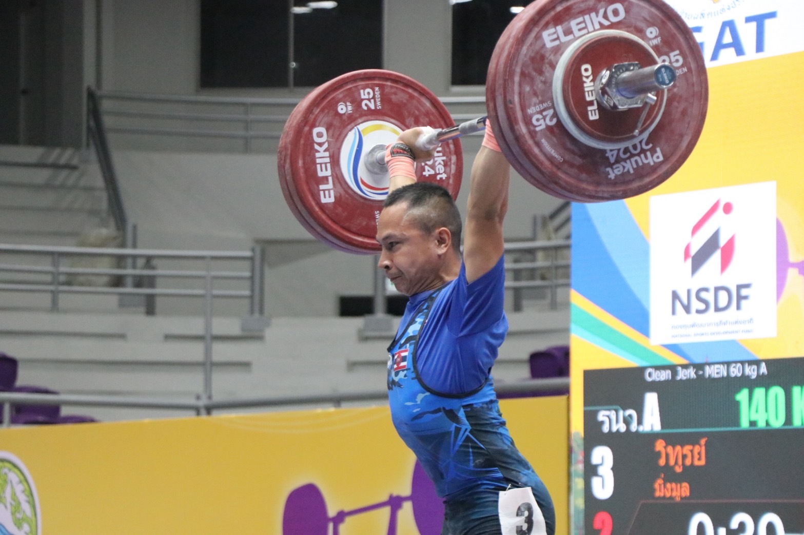 - วิทูรย์ มิ่งมูล จากสโมสรราชนาวี เอ รับ 3 เหรียญทอง ท่าสแนทช์ 111 กิโลกรัม, ท่าคลีนแอนด์เจิร์ก 140 กิโลกรัม, น้ำหนักรวม 251 กิโลกรัม