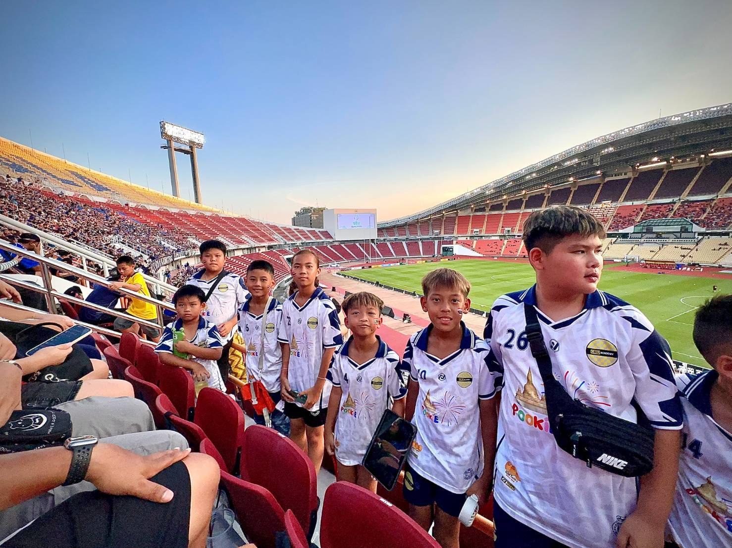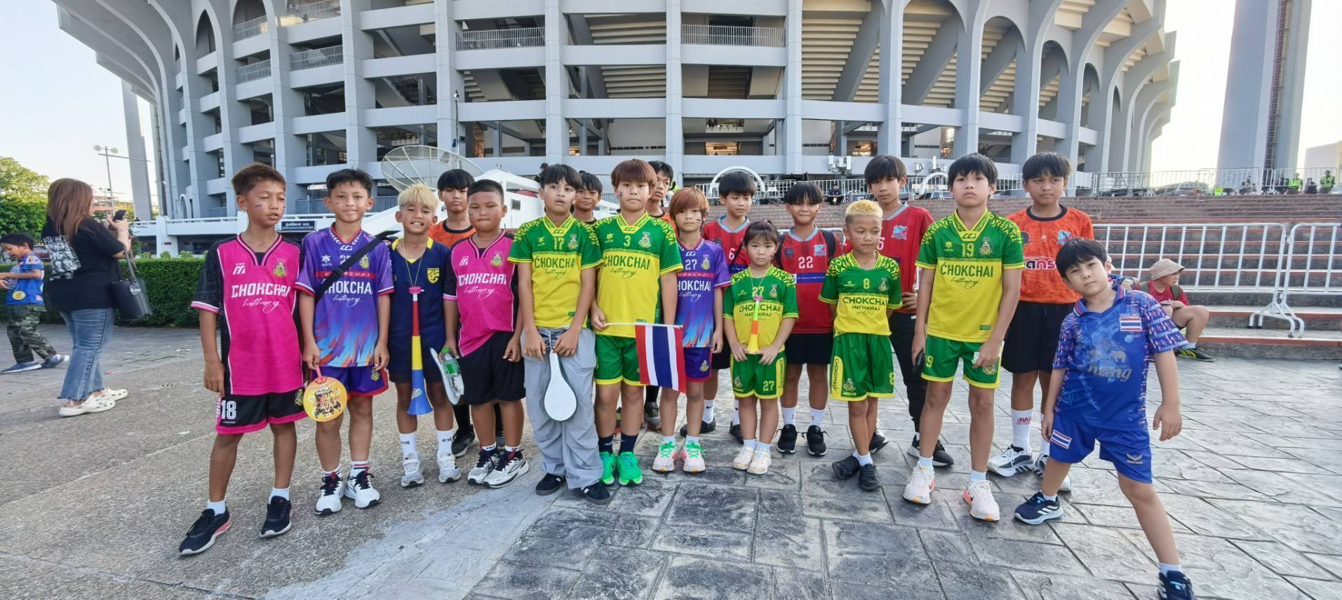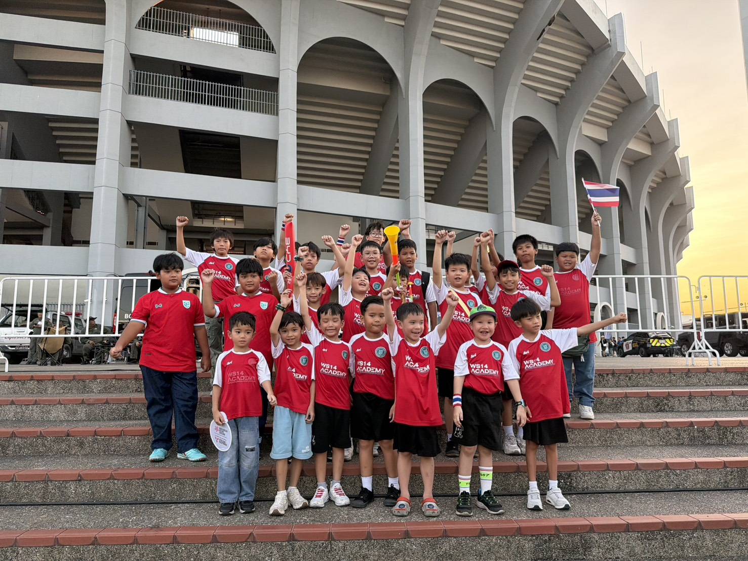 เด็กและเยาวชน จาก โรงเรียน และ อคาเดมี่ ขอบคุณ “มาดามแป้ง” นวลพรรณ ล่ำซำ นายกสมาคมกีฬาฟุตบอลแห่งประเทศไทยฯ ที่มอบประสบการณ์ล้ำค่าในการเข้าชมเกมการแข่งขันฟุตบอลเอเชียน คัพ 2027 รอบคัดเลือก กลุ่มดี นัดที่หก ระหว่าง ทีมชาติไทย พบกับ เติร์กเมนิสถาน เมื่อวันที่ 31 มีนาคม 2569 ณ สนามราชมังคลากีฬาสถาน