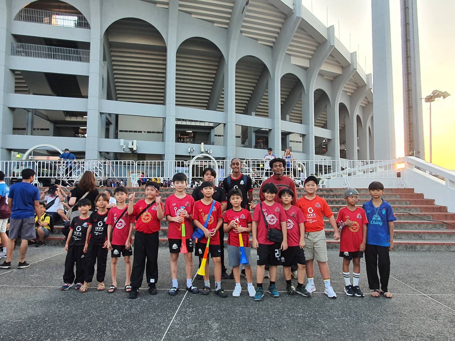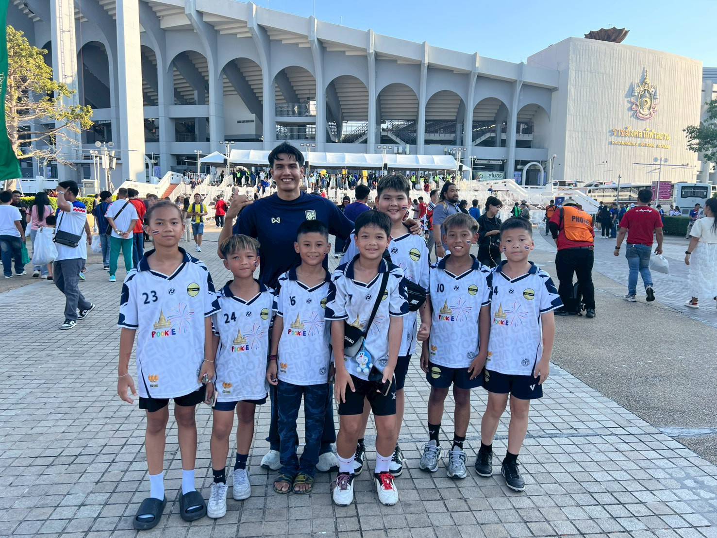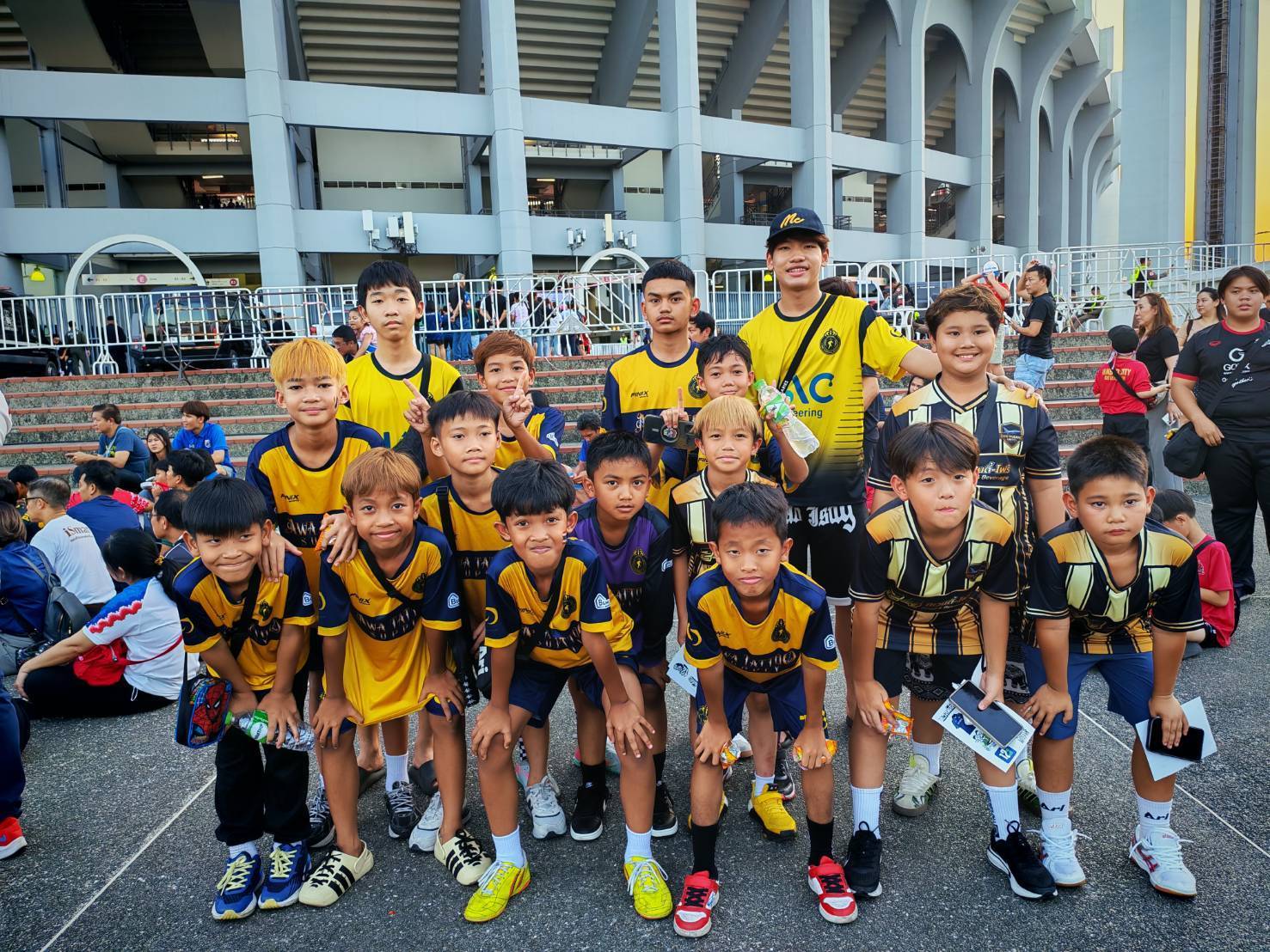 เด็กและเยาวชน จาก โรงเรียน และ อคาเดมี่ ขอบคุณ “มาดามแป้ง” นวลพรรณ ล่ำซำ นายกสมาคมกีฬาฟุตบอลแห่งประเทศไทยฯ ที่มอบประสบการณ์ล้ำค่าในการเข้าชมเกมการแข่งขันฟุตบอลเอเชียน คัพ 2027 รอบคัดเลือก กลุ่มดี นัดที่หก ระหว่าง ทีมชาติไทย พบกับ เติร์กเมนิสถาน เมื่อวันที่ 31 มีนาคม 2569 ณ สนามราชมังคลากีฬาสถาน