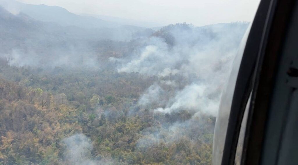 กองทัพบกจัด ฮ. MI -17 สนับสนุนแก้ไฟป่าในพื้นที่เข้าถึงยาก พร้อมระดมหน่วยทหารฉีดฝุ่นละอองในพื้นที่