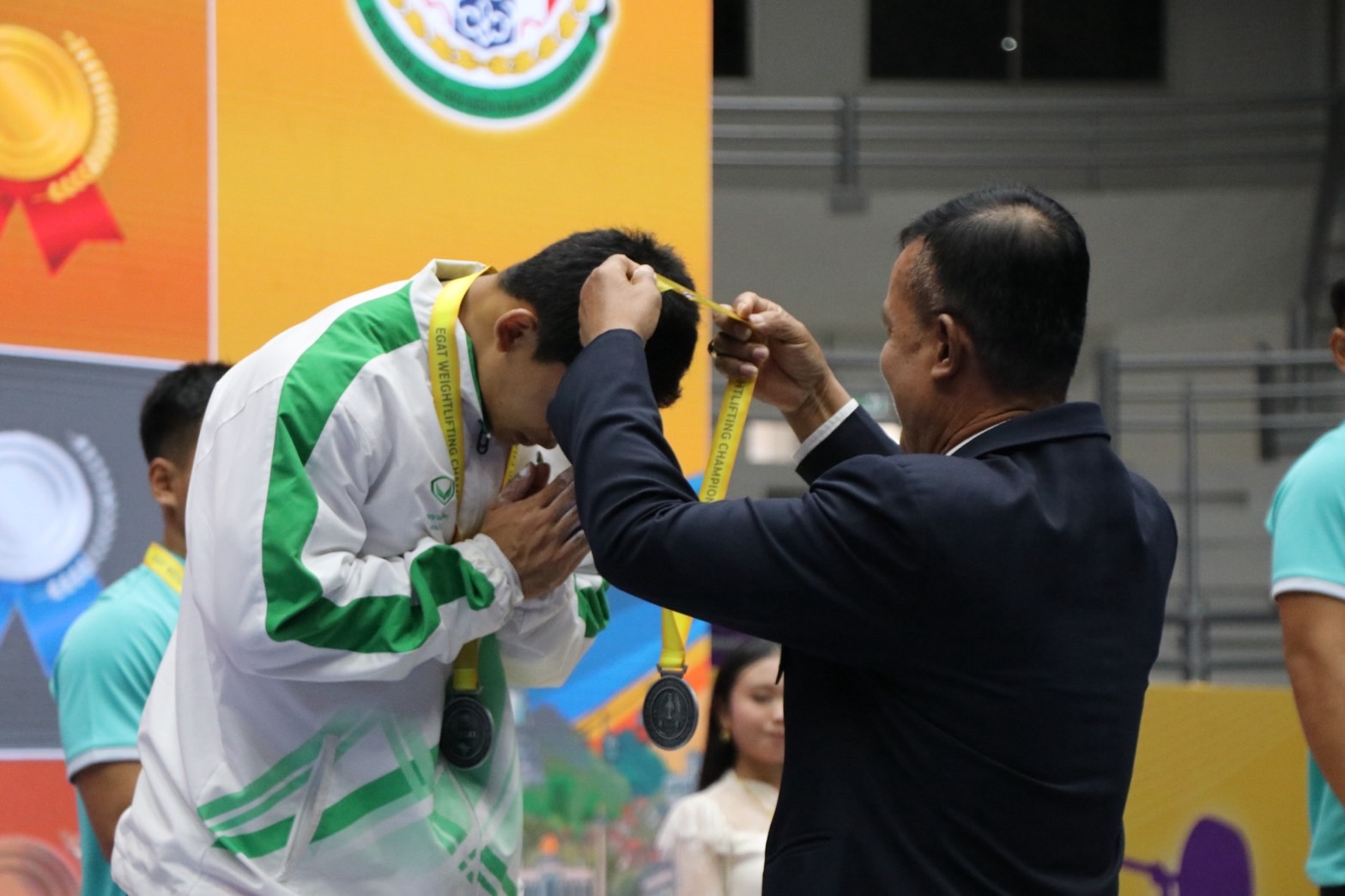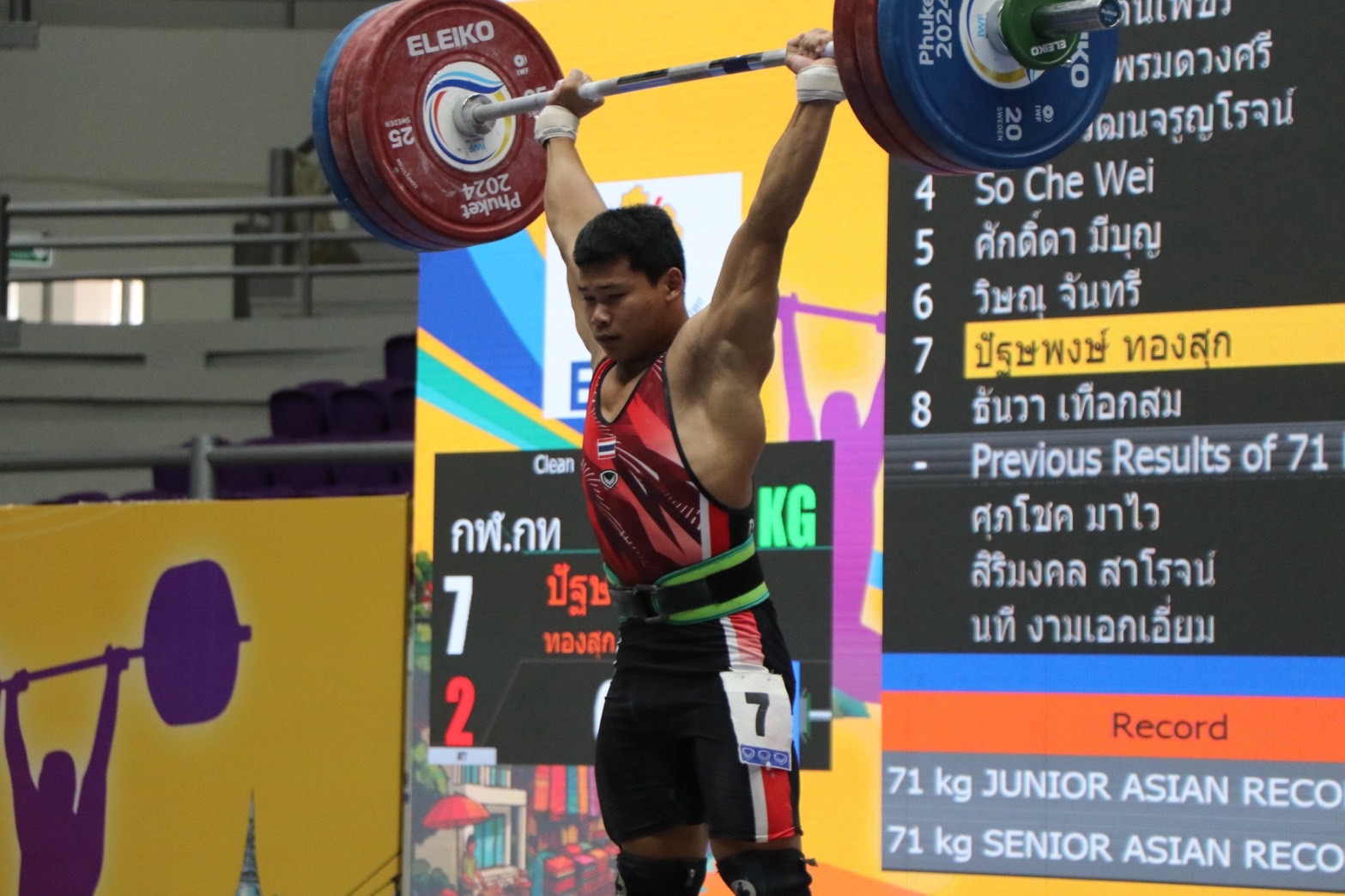 - ปัฐษพงษ์ ทองสุก จากโรงเรียนกีฬากรุงเทพมหานคร รับ 3 เหรียญเงิน ท่าสแนทช์ 132 กิโลกรัม, ท่าคลีนแอนด์เจิร์ก 167 กิโลกรัม, น้ำหนักรวม 299 กิโลกรัม
