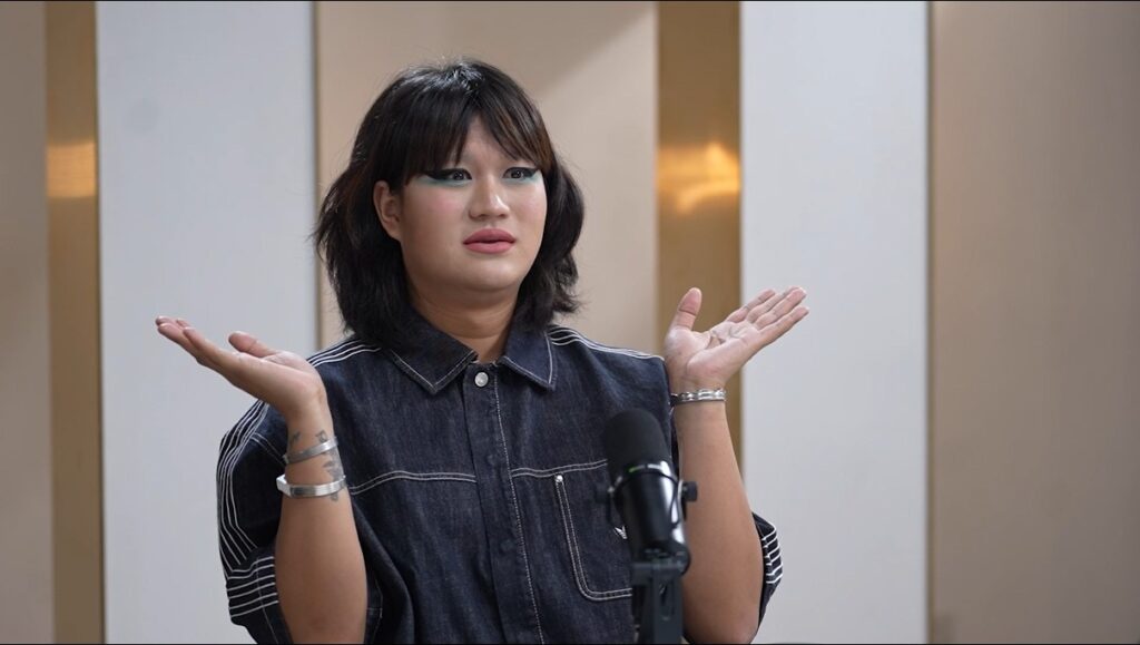 มะเดี่ยว : จริง ๆ มันเป็นสังคมไหม มันอาจจะเป็นเพราะว่าคือ เริ่มต้นจากสแตนดาร์ดก่อน ไม่ใช่แค่คนพิการหรอก แค่คนไม่หลุดจากสแตนดาร์ดที่ควรจะเป็นที่เราเคยเห็นว่าคนนี้สวย แค่หลุดสแตนดาร์ด เขาก็จะรู้สึกว่าตัวเองฉันเกิดมาฉันมีบาปหรือเปล่า เหมือนกับการที่มะเดี่ยวเป็นตุ๊ดเหมือนกัน สมัยที่บ้านแถวต่างจังหวัดเขาก็จะบอกว่าทำบาปมาแต่ชาติที่แล้ว เป็นเพราะเจ้าชู้หรือเปล่าเลยเกิดมาเป็นตุ๊ด ทั้งหมดมันอยู่ที่คนจะให้คุณค่ากันเองมากกว่า