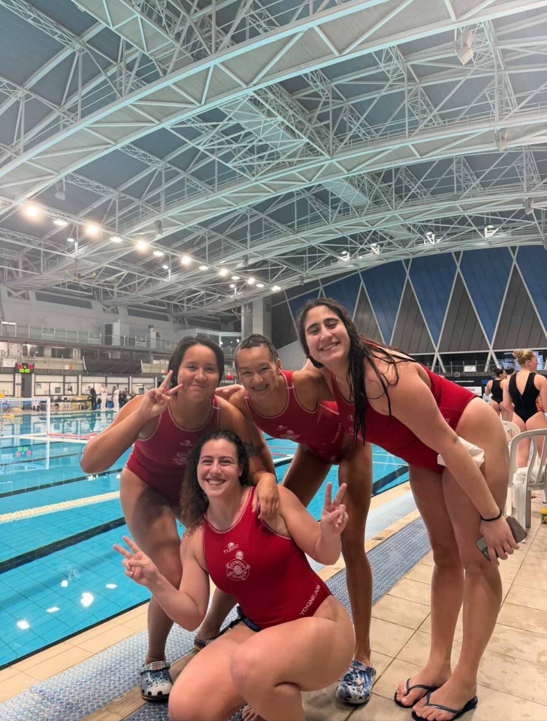 ในเวลาเดียวกันของภาวะสงครามยังมี 2 นักกีฬาโปโลน้ำสาวทีมชาติไทยชุดแชมป์ซีเกมส์คือ “น้องแอม” ภัณฑิลา อาสายุทธ์ กับ “น้องแพรวา” รักษิณา เรืองทรัพย์ไพศาล ที่กำลังเล่นลีกอาชีพอยู่ที่สโมสรฮาโปแอลโยคเนียม (Hapoel Yoqneam) สโมสรโปโลน้ำชั้นนำของประเทศอิสราเอล ซึ่งมีชื่อเสียงจากการเข้าร่วมแข่งขันระดับนานาชาติ รวมถึงรายการ Women Euro Cup วูเม่น ยูโร คัพ และการแข่งขันในยุโรป โดยนักกีฬาทั้ง 2 คนยืนยันว่าปลอดภัยดี พื้นที่ที่อยู่ไม่ใช่พื้นที่สงคราม