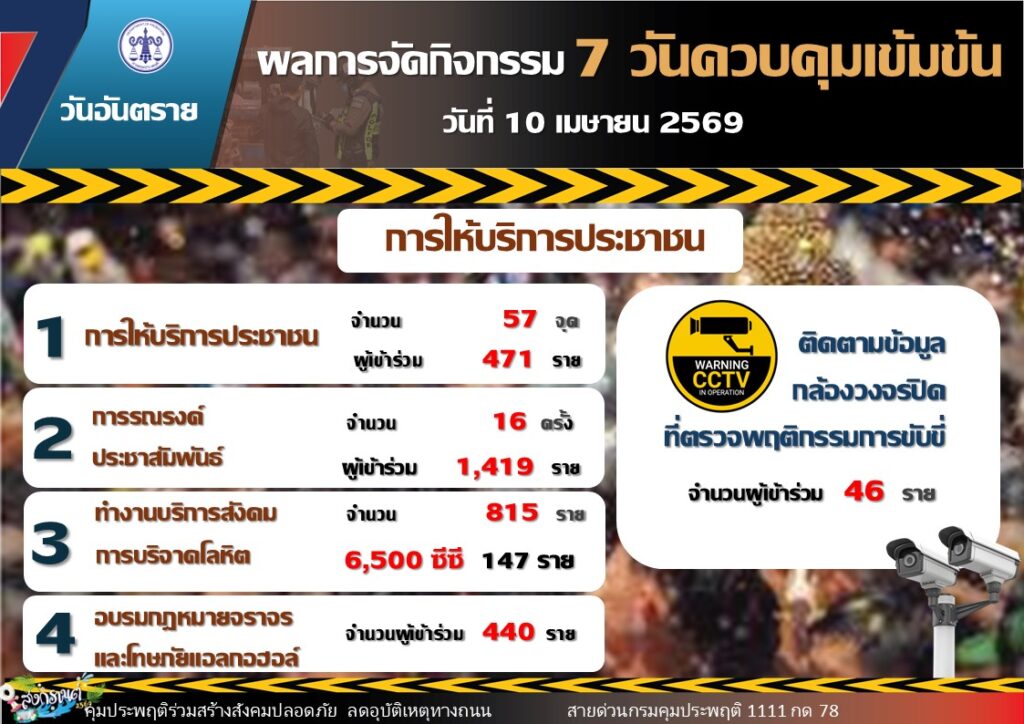 กรมคุมประพฤติเผย วันแรกของมาตรการคุมเข้ม พบเมาขับกว่า 350 คดี พร้อมห่วงใยประชาชนเดินทางกลับภูมิลำเนาช่วงเทศกาลสงกรานต์
