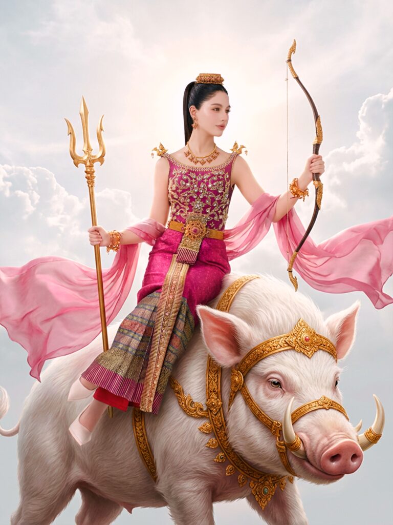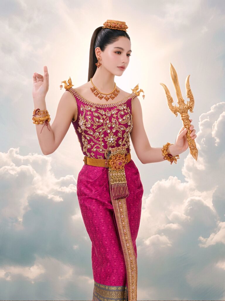 ลุคนี้ของสาวเชลลี่ตั้งใจทำออกมาเพื่อเซอร์ไพร์สแฟนๆ ถึงแม้ว่าจะใส่ชุดไทย หรือผ้าไทยให้แฟนๆได้เห็นกันบ่อยในช่วงนี้ แต่กับลุคนี้สาวเชลลี่ตั้งใจจัดเต็มทั้งเสื้อภาพ เครื่องประดับ แบบครบชุด มากับลุคนางรากษสเทวีที่มาพร้อมหมูป่าสีชมพู มือขวาถือตรีศูล มือซ้ายถือคันธนู ให้ออกมางดงามราวดั่งภาพวาดจิตรกรรม