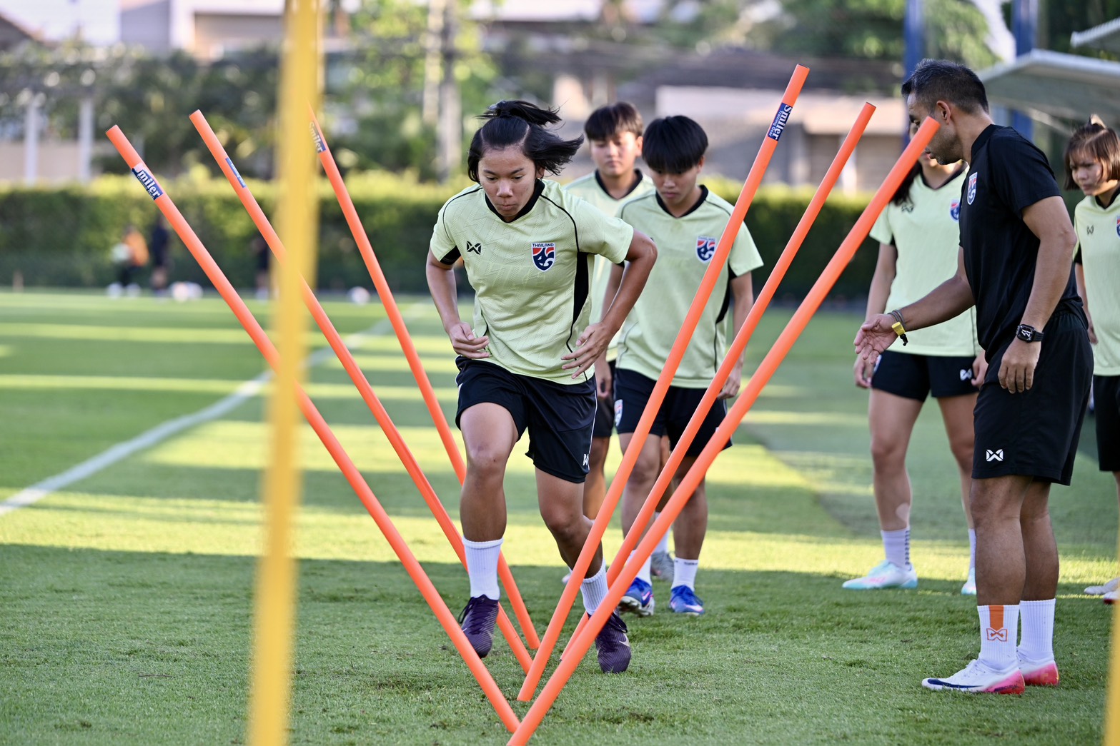 การฝึกซ้อมครั้งนี้ “โค้ชหนึ่ง” หนึ่งฤทัย สระทองเวียน หัวหน้าผู้ฝึกสอน เน้นไปที่การทบทวนแทคติกทั้งเกมรุกและเกมรับ รวมถึงการเล่นลูกตั้งเตะและลูกเตะมุม ซึ่งใช้เวลา 1 ชั่วโมง 30 นาที