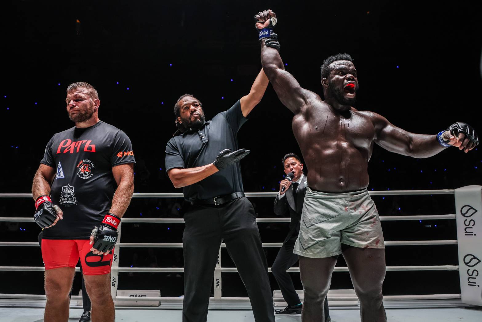 ย้อนไปในศึก ONE 169 เมื่อเดือน พ.ย. 67 “รุง รุง” โชว์ฟอร์มหักปากกาเซียนทุกสำนัก ด้วยการคว้าแชมป์โลก ONE MMA รุ่นเฮฟวีเวต มาครอง จากการเอาชนะคะแนนไม่เอกฉันท์ (2 ต่อ 1 เสียง) “อนาโตลี” อดีตเจ้าของตำแหน่งผู้ไร้พ่าย ณ ขณะนั้น และกลายเป็นแชมป์โลก ONE คนแรกจากทวีปแอฟริกา