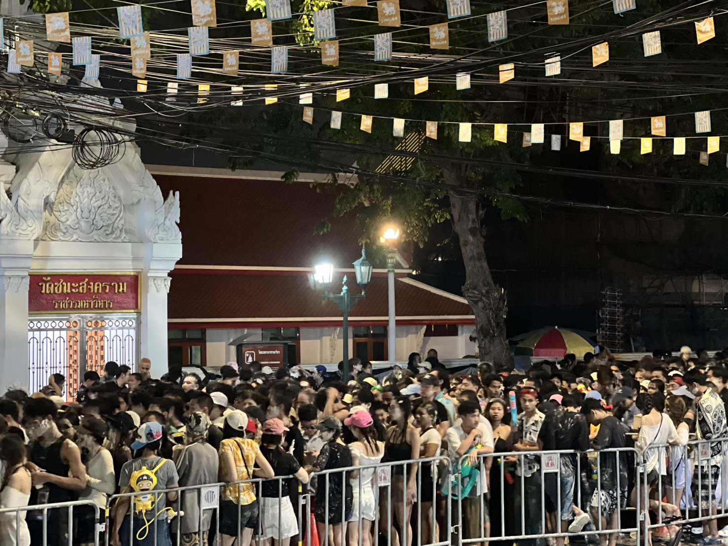 สําหรับถนนข้าวสารสามารถจุนักท่องเที่ยวได้ประมาณวันละ 8 หมื่นคน โดยเมื่อวานมีนักท่องเที่ยวเข้ามาเล่นนํ้ากว่า 76,000 คน ซึ่งลดลง 30% หากเทียบกับปีที่แล้ว เนื่องจากสถานการณ์สู้รบในตะวันออกกลางและวิกฤตพลังงาน อย่างไรก็ตามเจ้าหน้าที่ตํารวจยังคงวางกําลังคุมเข้มกว่า 600 นาย พร้อมนําเทคโนโลยีกล้องวงจรปิดและโดรนบินตรวจประเมินสถานการณ์ทุก 1 ชั่วโมงเพื่อดูแลความปลอดภัยให้กับนักท่องเที่ยวที่เดินทางมาเล่นนํ้าที่ ถ.ข้าวสาร