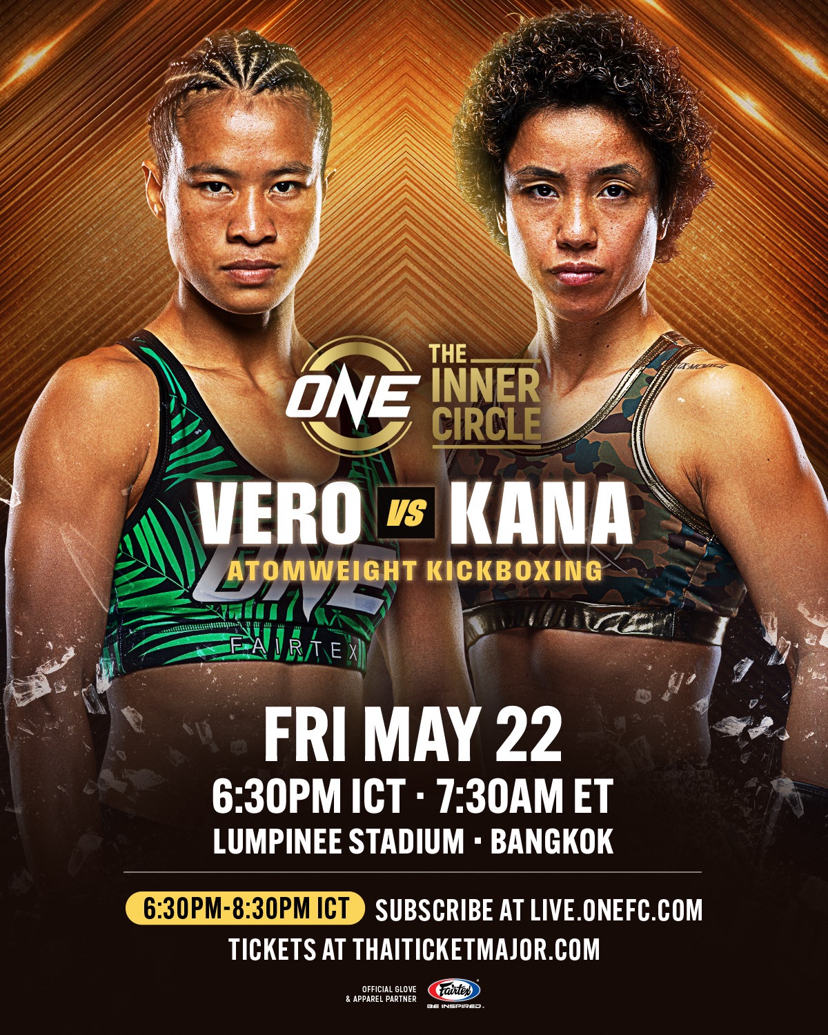ติดตาม “เวโร vs คานะ” วันศุกร์ที่ 22 พ.ค. นี้ จองบัตรเข้าชมในสนามผ่านทาง THAI TICKET MAJOR สำหรับผู้ชมทางบ้าน สามารถรับชมการถ่ายทอดสด The Inner Circle ในช่วงเวลา 18.30 น. – 20.30 น. ทาง LIVE.ONEFC.com สงวนสิทธิ์เฉพาะสมาชิกเท่านั้น ดูรายละเอียดการสมัครสมาชิกได้ที่ลิงก์นี้ ONEFC.com