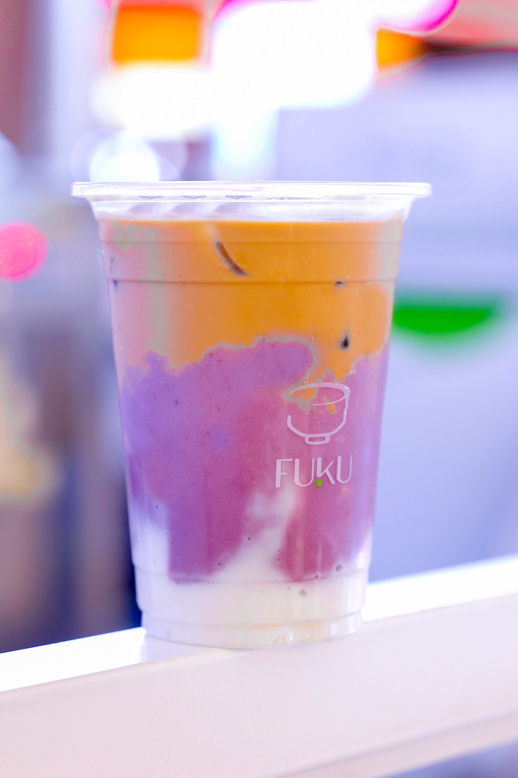 • FUKU MATCHA ชวนลิ้มลองความหอมละมุนของ ชานมเผือกโมจิ ที่ผสานรสหวานนุ่มของเผือกเข้ากับเนื้อโมจิหนึบหนับได้อย่างลงตัว มูลค่า 105 บาท ใช้เพียง 35 คะแนน แลกรับฟรี