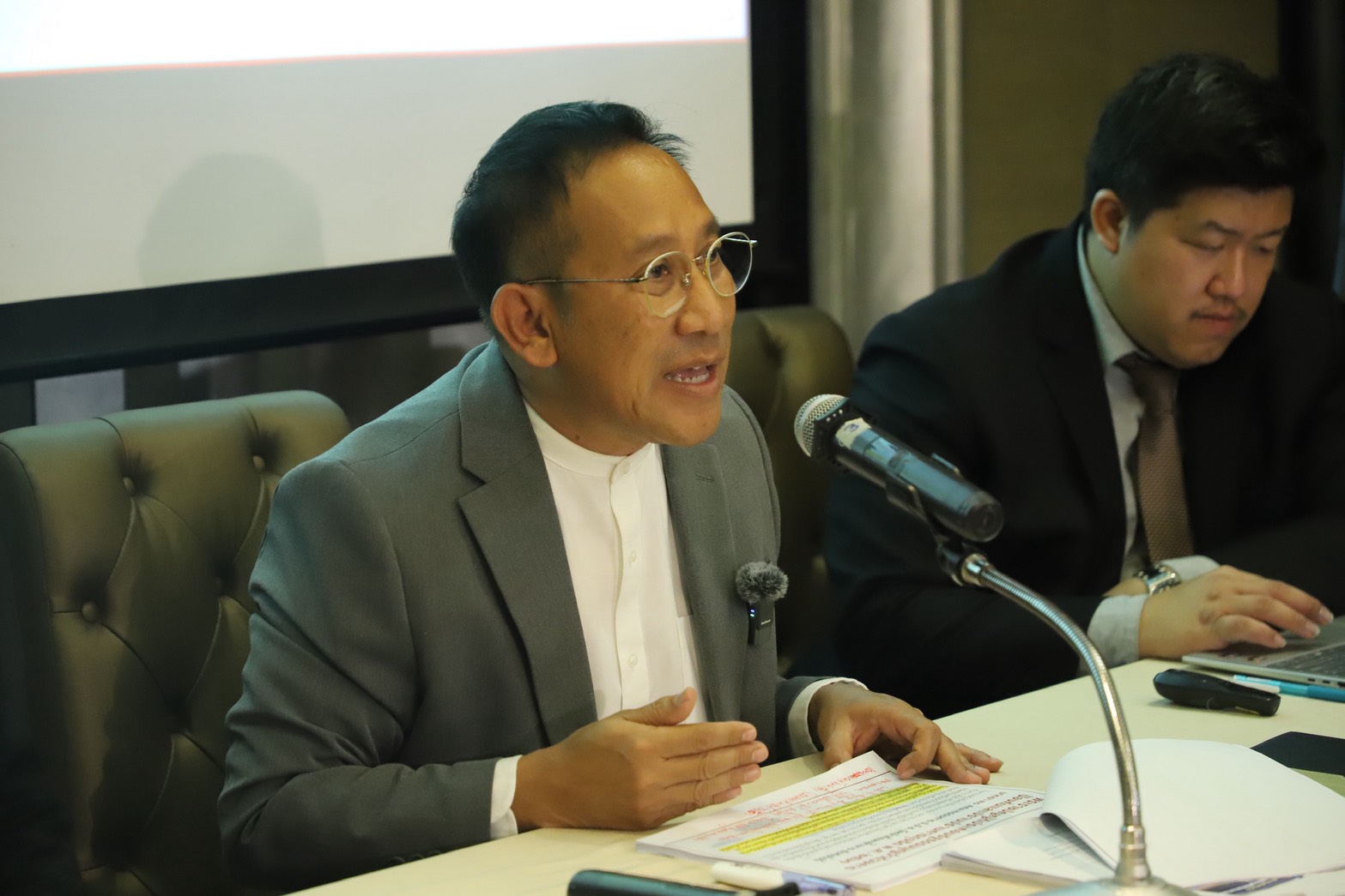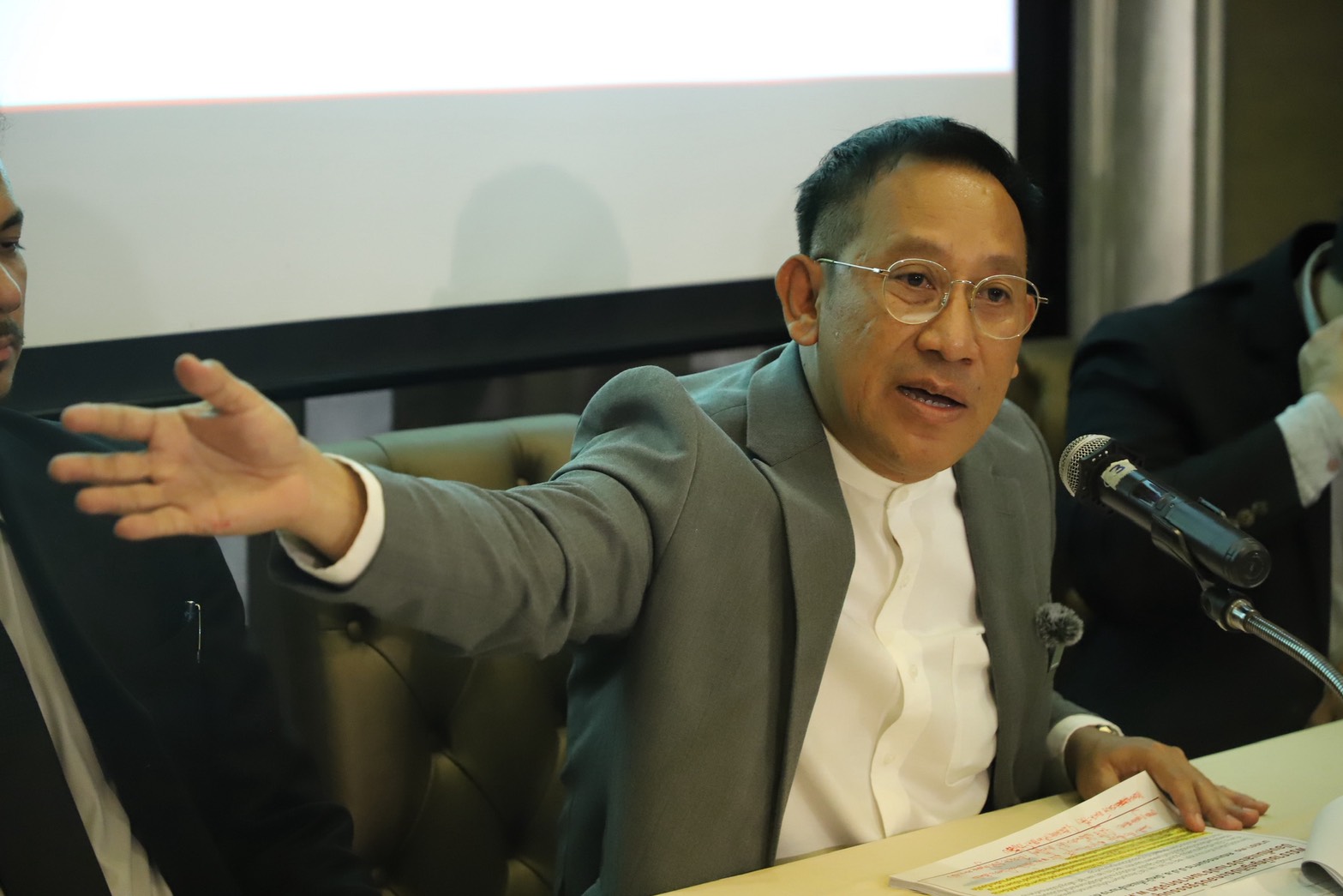 โดย ก่อนเริ่มการแถลงข่าว พ.ต.อ. ภาคภูมิ พิศมัย อดีตลูกน้องคนสนิท มาปรากฎตัวหน้าห้องประชุม เพื่อจะขอเข้าฟังการแถลงข่าว โดยทีมทนายได้ชี้แจงว่าเป็น “คู่กรณีโดยตรง” และการแถลงครั้งนี้เป็นกิจกรรมส่วนตัว จึงไม่อนุญาตให้เข้าร่วม รวมถึงขอความร่วมมือไม่ให้เจ้าหน้าที่ตำรวจที่ไม่เกี่ยวข้องอยู่ในห้อง เพื่อป้องกันปัญหาที่อาจเกิดขึ้น