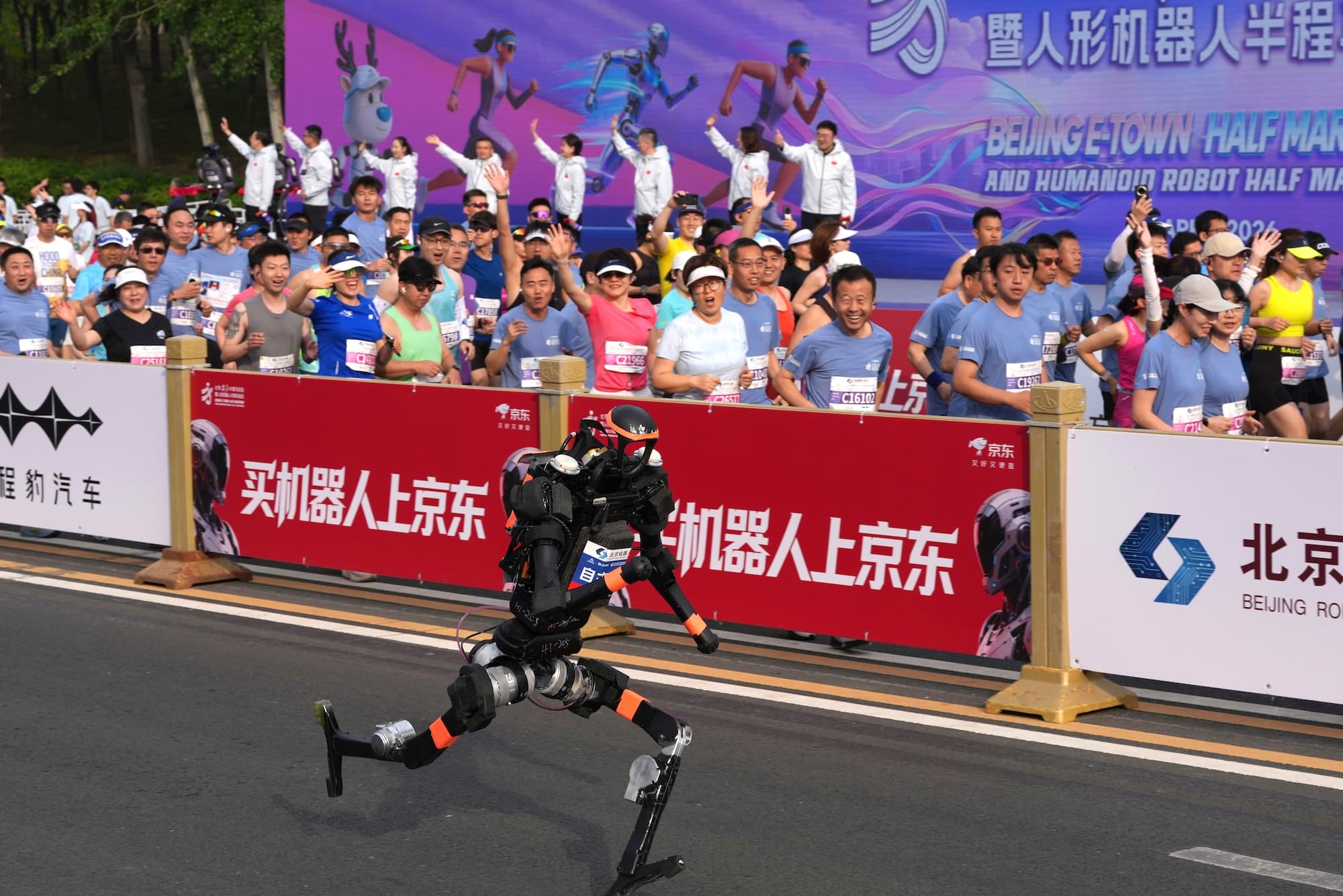 ภาพดังกล่าวชัดเจนขึ้นในงาน Beijing E-Town Half Marathon ที่จัดขึ้น ณ กรุง ปักกิ่ง ประเทศ จีน เมื่อวันที่ 19 เมษายน 2569 ซึ่งนอกจากนักวิ่งมนุษย์กว่า 12,000 คนแล้ว ยังมี “กองทัพหุ่นยนต์ฮิวมานอยด์” จากมากกว่า 100 ทีม เข้าร่วมแข่งขันวิ่งฮาล์ฟมาราธอนระยะทาง 21 กิโลเมตร บนลู่วิ่งที่แยกจากมนุษย์อย่างชัดเจน