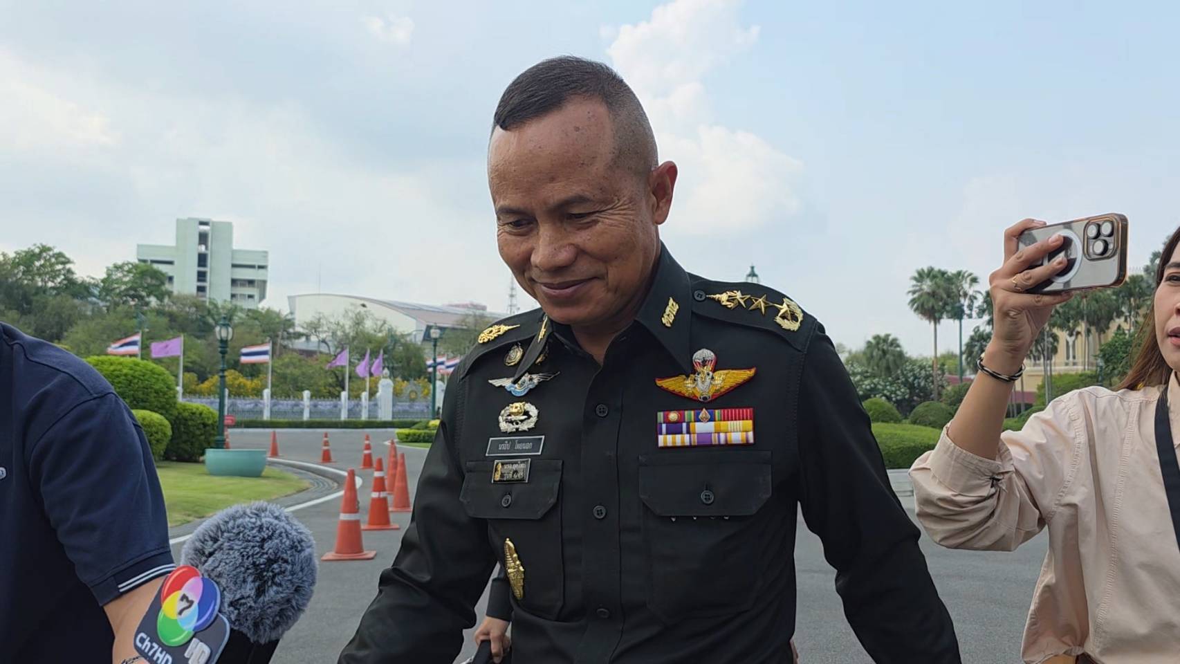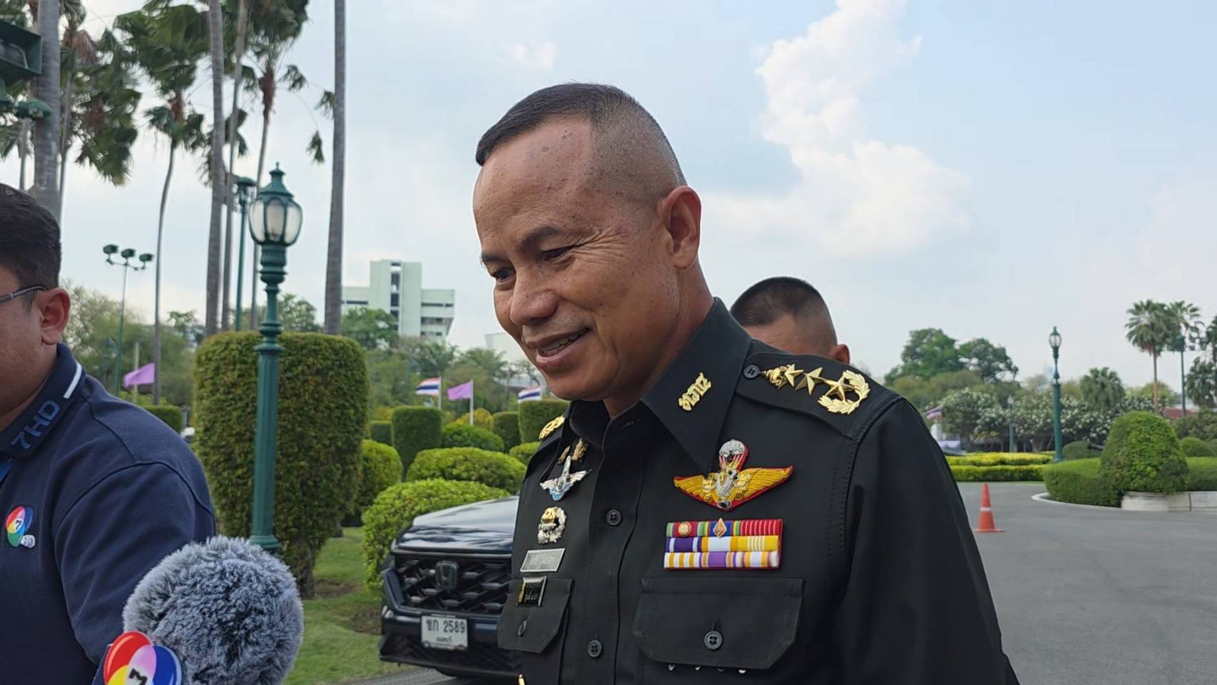 เมื่อถามว่า จะสามารถลดแรงกดดันจากมวลชนในพื้นที่ได้หรือไม่ พล.ท.นรธิป ยกมือ ปฏิเสธตอบคำถามอีกครั้ง ก่อนที่จะหยุดเดิน และมองหารถเพื่อเดินทางออกจากทำเนียบรัฐบาล