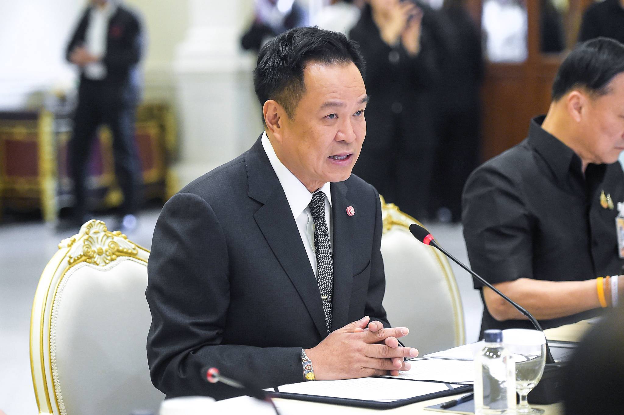 นายพลพีร์ สุวรรณฉวี รมช.มหาดไทย นางศุภมาส อิศรภักดี นายนภินทร ศรีสรรพางค์ นางสุขสมรวย วันทนีย์กุล รมต.ประจำสำนักนายกฯ นายอรรษิษฐ์ สัมพันธรัตน์ ปลัดมหาดไทย และนายฉัตรชัย บางชวด เลขาธิการสภาความมั่นคงแห่งชาติ (สมช.) ทั้งนี้ นางศุภจี สุธรรมพันธุ์ รองนายกฯ และรมว.พาณิชย์ วิดีโอคอนเฟอเรนซ์ เข้ามาร่วมประชุมด้วย